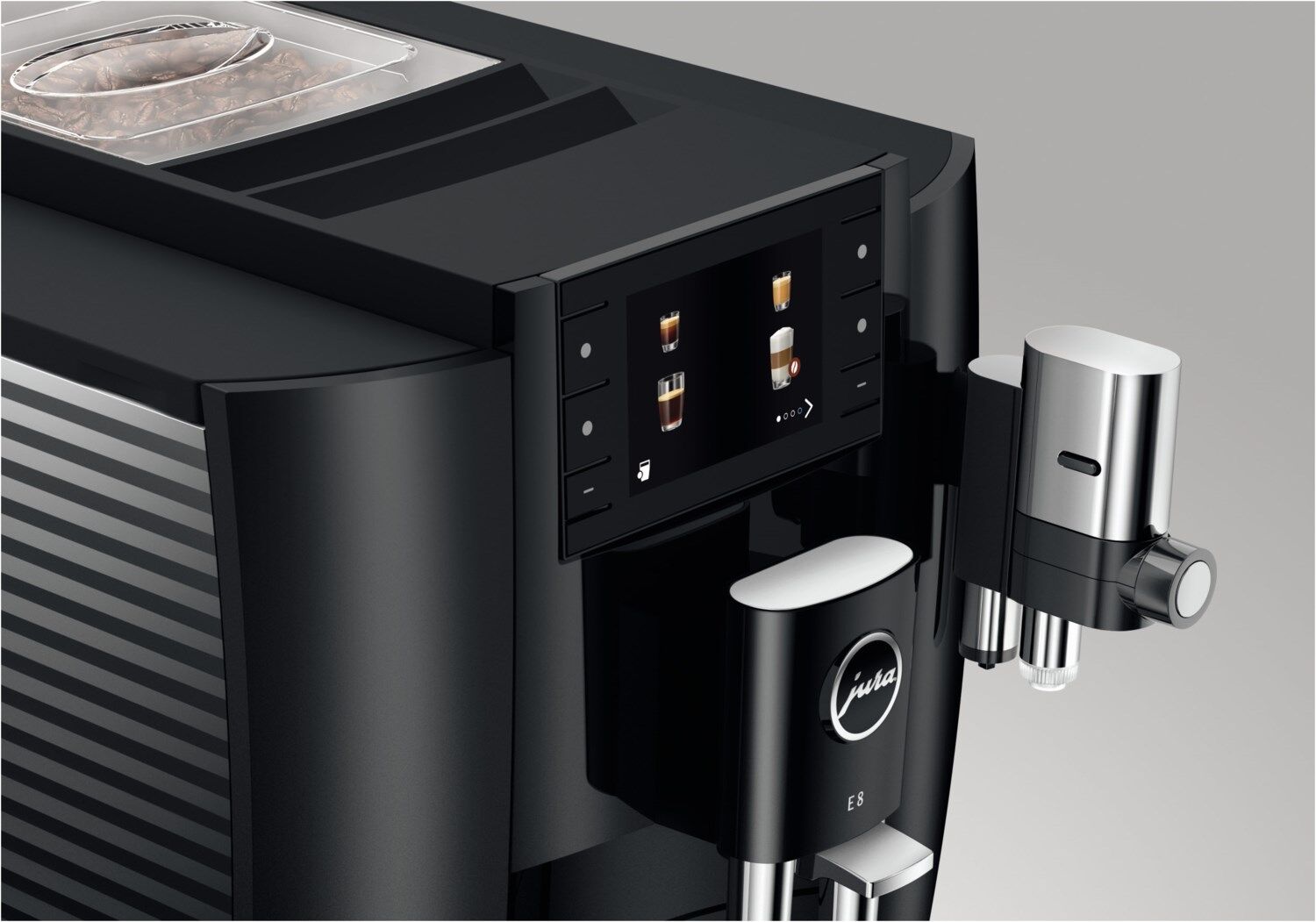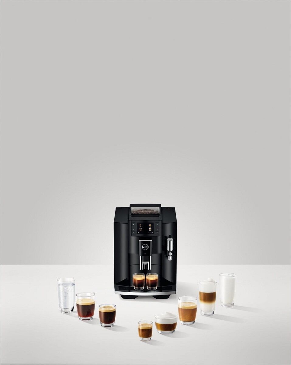 Die jüngste Generation der E8 wird den hohen Ansprüchen, die an die Weiterentwicklung des erfolgreichsten Vollautomaten-Modells von JURA gestellt werden, in allen Belangen gerecht. Sie begeistert mit großartigen Kaffeeresultaten, besticht durch einfachste Bedienung und setzt Zeichen mit ihrem modernen, schlanken Design. Modernste Technik befähigt sie, 17 verschiedene Kaffeeklassiker und -spezialitäten auf Knopfdruck in bester Kaffeebar-Qualität zuzubereiten. Mit dem Mahlwerk P.A.G.2 natürlich stets frisch gemahlen und dank hochentwickelter Brühtechnologie unter idealen Bedingungen extrahiert. Der Weg zum Genuss ist direkt und intuitiv, denn das 3,5"-Tastendisplay mit großen Symbolen bietet höchsten Bedienkomfort. Ausgestattet mit vielen Vorzügen aus der Premiumklasse besitzt die E8 darüber hinaus einen hohen Werterhalt.