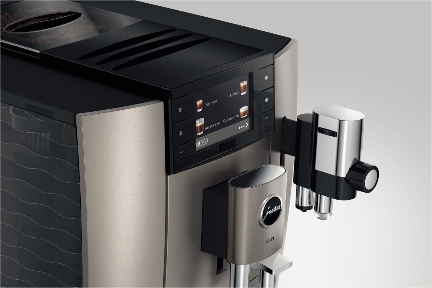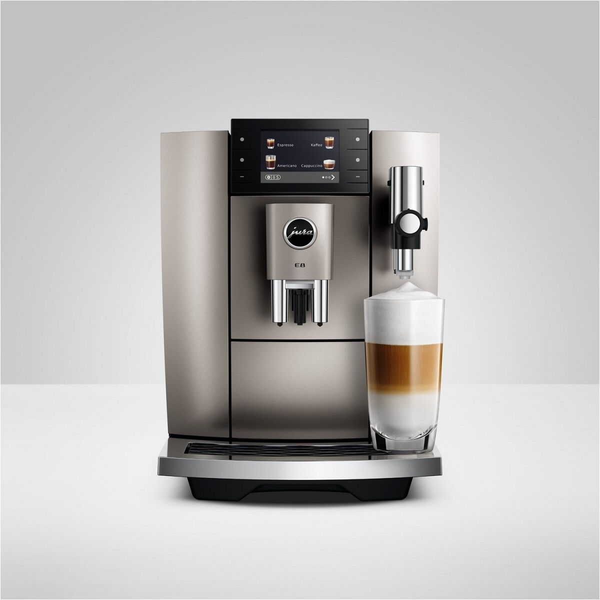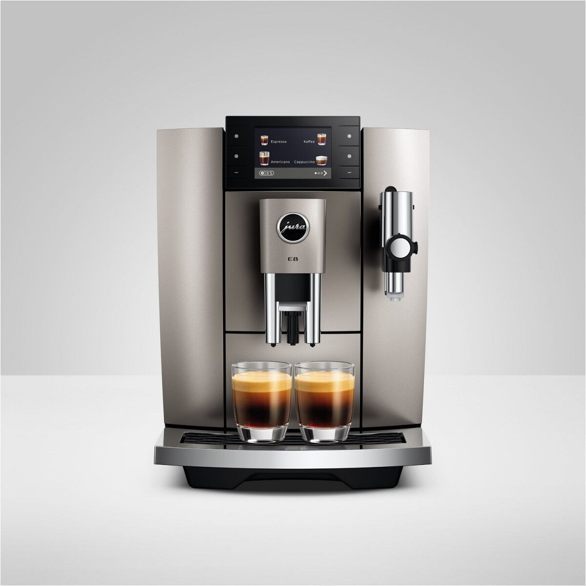 Die E8 strahl mit Stil und positioniert sich dank ihrer 27-cm-Breite auch in kleineren Küchen mit eindrucksvoller Wirkung; im Design und Kaffee-Erlebnis.