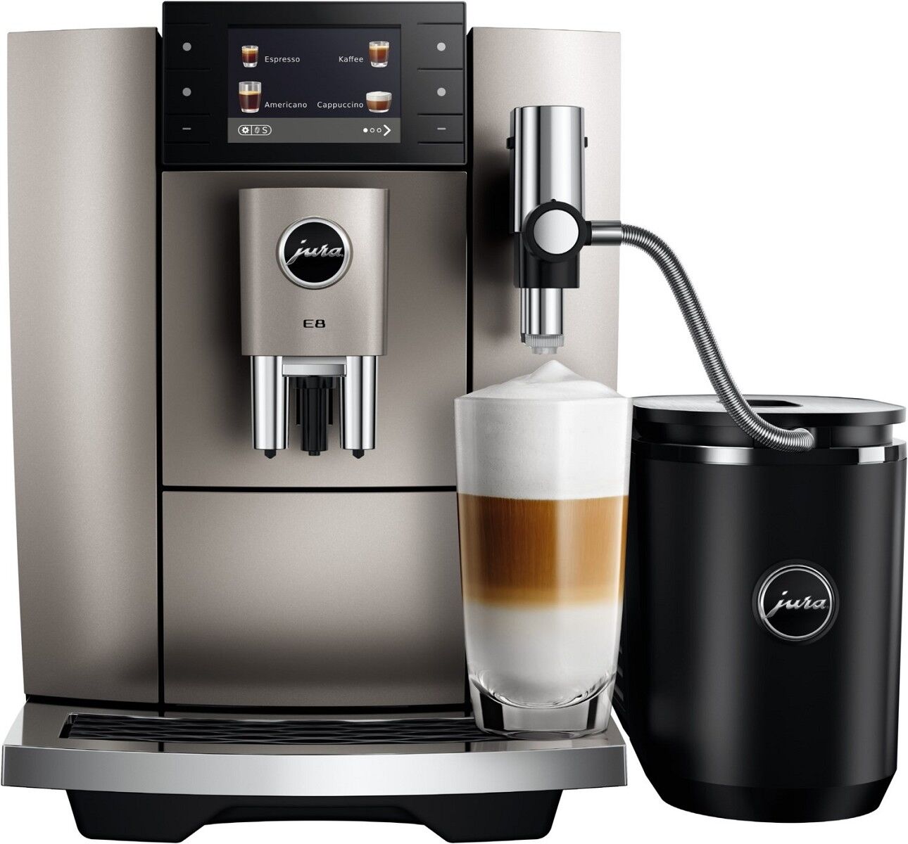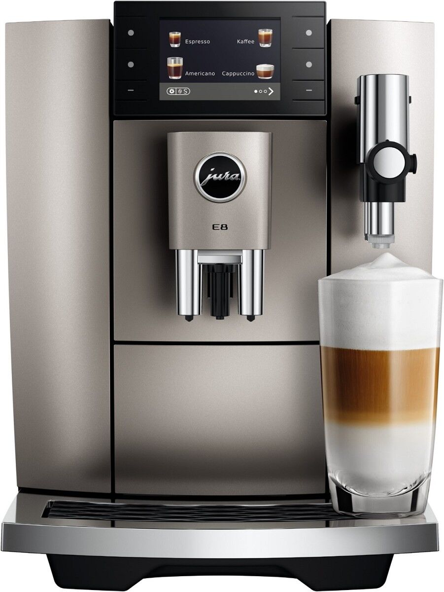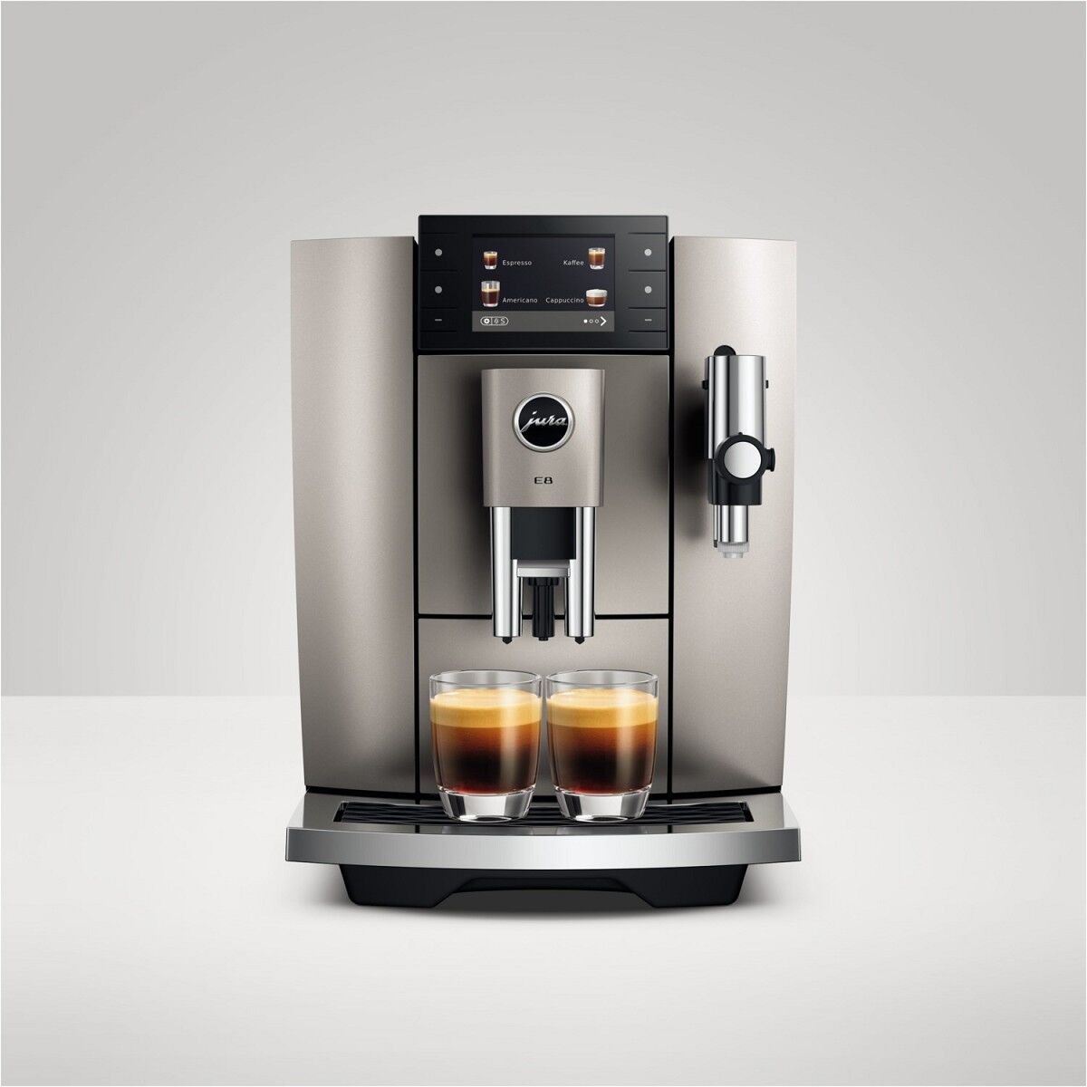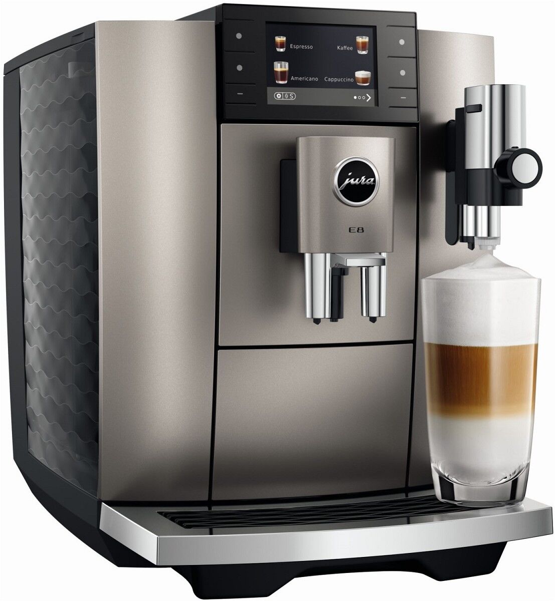 Die E8 strahl mit Stil und positioniert sich dank ihrer 27-cm-Breite auch in kleineren Küchen mit eindrucksvoller Wirkung; im Design und Kaffee-Erlebnis.