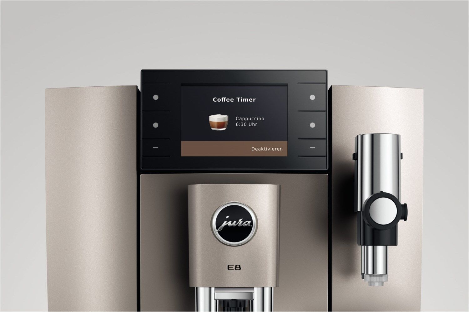 Die E8 fasziniert zusätzlich mit intelligenter Technologie wie dem Coffee Timer. Dank ihm lässt sich der Morgenkaffee über die App J.O.E.® programmieren und frisch gemahlen und zubereitet gleich nach dem Aufstehen genießen.