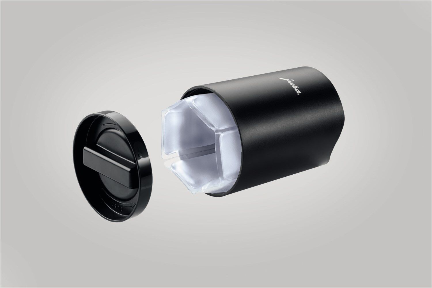 Über einen schraubbaren Deckelboden kann die Kühlmanschette in die Glacette eingesetzt und entnommen werden. Die Formgebung ist perfekt auf die Designsprache abgestimmt und passt zu jedem Vollautomaten von JURA.