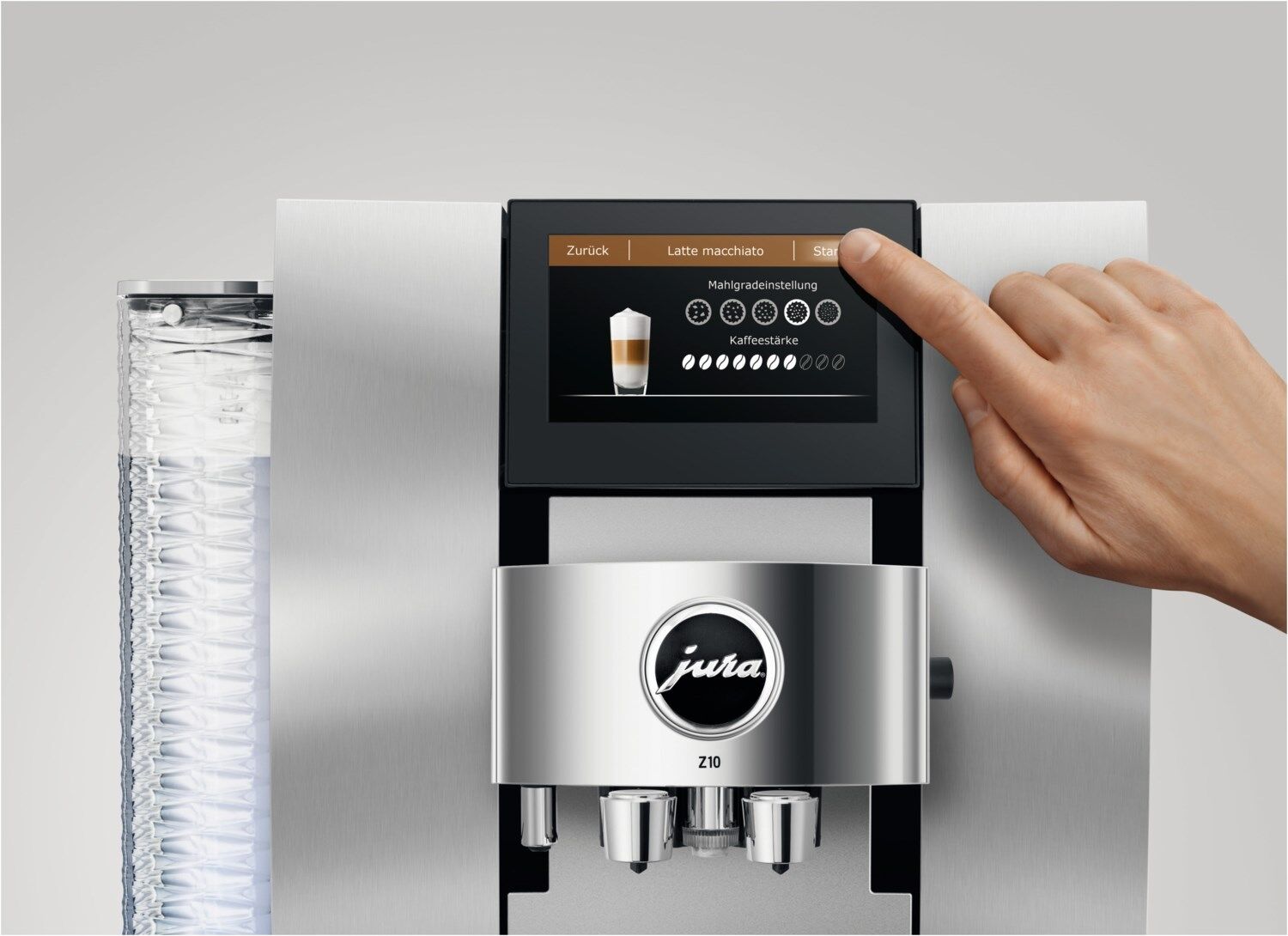 Steuern lässt sich der Premium-Vollautomat der Superlative über ein doppelt schnelles 4,3"-Touchdisplay und den Blue Crystal Rotary Switch. Das Speciality-Selection-Menü und künstliche Intelligenz gestalten die Bedienung besonders einfach und intuitiv. Der technologische Quantensprung spiegelt im skulpturalen Design wider. Die konvex-konkave Frontpartie ist der sichtbare Beweis für die Liebe zum Detail und absolute Fertigungspräzision. Ihre Hochwertigkeit macht die Z10 zu einem Statement hervorragenden Geschmacks.