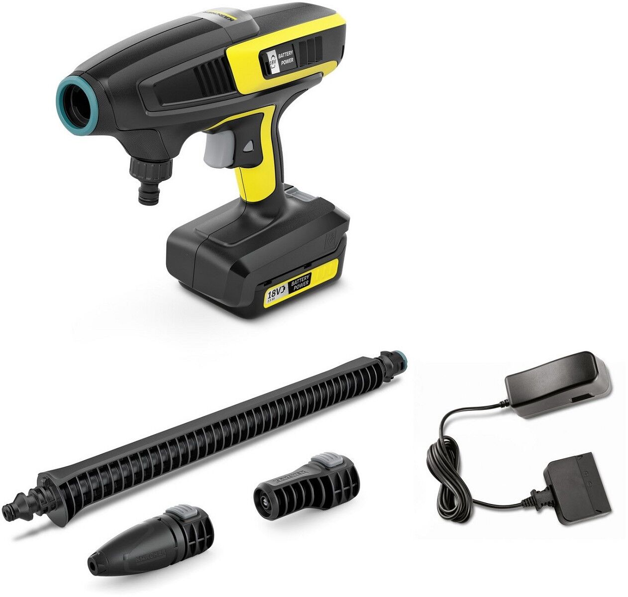Kein Stromanschluss? Kein Problem! Der leichte handgehaltene Akku-Mitteldruckreiniger KHB 6 Battery der Kärcher 18 V Battery-Plattform reinigt unabhängig vom Stromnetz praktisch alles rund ums Haus. Einfach den Schlauch anschließen und los geht’s. Mit der schonenden Flachstrahldüse werden Gartenmöbel, Spielzeug und vieles mehr schnell von lästigem Schmutz befreit. Die Blumenkübel sind mit Blütenstaub und Erde befleckt? Da muss die effiziente Rotordüse ran, mit der auch stärkere Verschmutzungen mühelos entfernt werden. Beide Düsen, der leistungsstarke Lithium-Ionen-Wechselakku (18 V / 2,4 Ah) und das Ladegerät sind im Lieferumfang enthalten. Der langlebige und leistungsstarke Lithium-Ionen-Wechselakku kann in allen Akkugeräten der 18 V Kärcher Battery Power-Plattform eingesetzt werden. Das LCD-Display des Akkus zeigt dank innovativer Real Time Technology die verbleibende Kapazität an, beim Arbeiten, Laden und Lagern. Das breite Zubehörangebot macht den KHB 6 Battery noch vielseitiger. So sind beispielsweise eine Schaumdüse, eine Waschbürste und ein Ansaugschlauch, um Wasser aus alternativen Quellen zu nutzen, zusätzlich erhältlich.