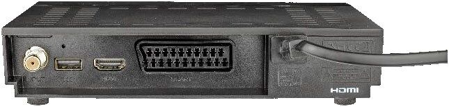 1x HDMI-Ausgang, 1x SCART (Audio Stereo analog, Video FBAS analog) 1x USB, Digitaler Audio-Ausgang (optisch), 4-stelliges Display