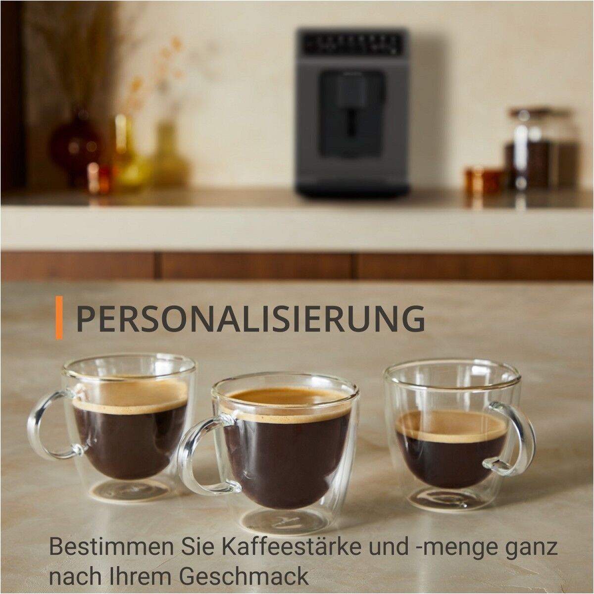 Der platzsparende Classic Kaffeevollautomat im modernen Krups Design sorgt dank Brühgruppe aus Metall und Milk-Advanced-Technologie für immer beste Kaffee- Ergebnisse.