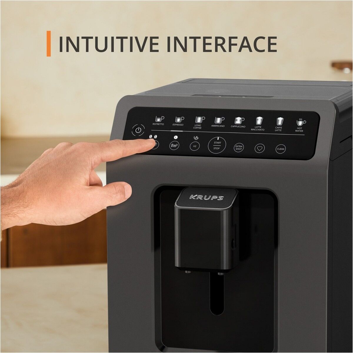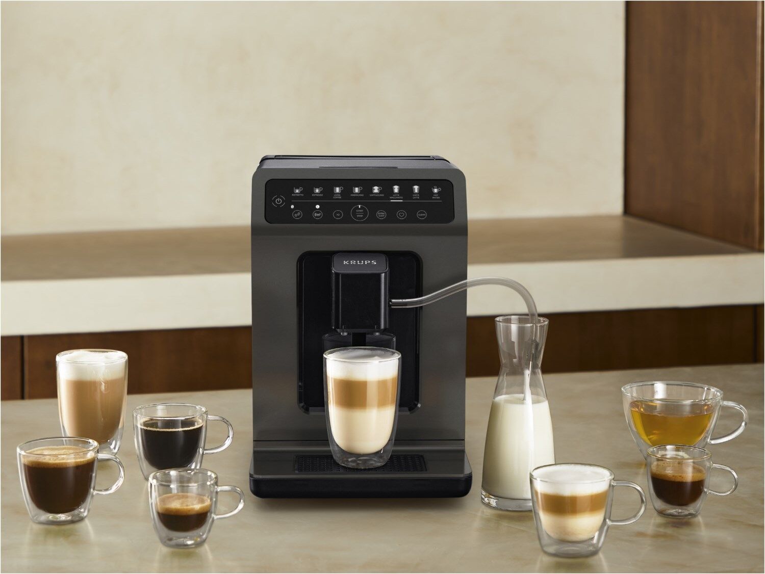 Der platzsparende Classic Kaffeevollautomat im modernen Krups Design sorgt dank Brühgruppe aus Metall und Milk-Advanced-Technologie für immer beste Kaffee- Ergebnisse.