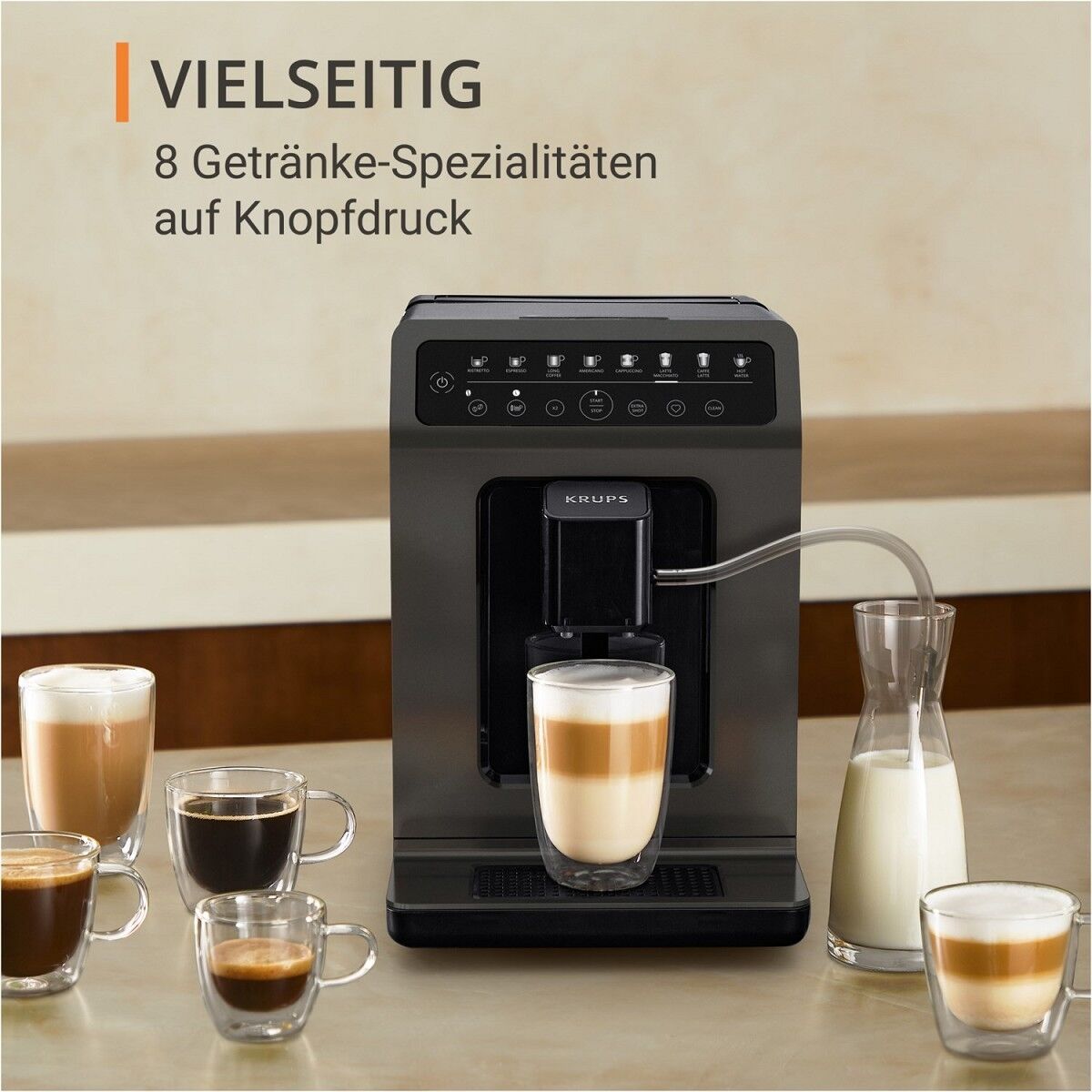 Milk-Advanced-Technology: Perfekter, feinporiger Milchschaum auf Knopfdruck Höhenverstellbarer Kaffeeauslauf auch für große Latte Macchiato Gläser