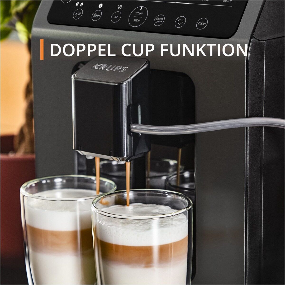Entdecken Sie jetzt mit dem platzsparenden Krups einen One-Touch-Cappuccino Vollautomaten für echte Kaffee und Cappuccino Liebhaber. 8 verschiedene Getränkespezialitäten stehen auf Knopfdruck zur Verfügung. Highlight ist die Milk-Advanced Technologie die für immer feinporigen Milchschaum sorgt, dazu lassen sich sogar Cappuccino und Latte Macchiato gleichzeitig zweifach zubereiten - für gemeinsamen Kaffeegenuss. Dank geschlossenem Brühsystem genießen Sie die Reinigung so einfach wie Sie es von einem VOLLautomaten erwarten dürfen.