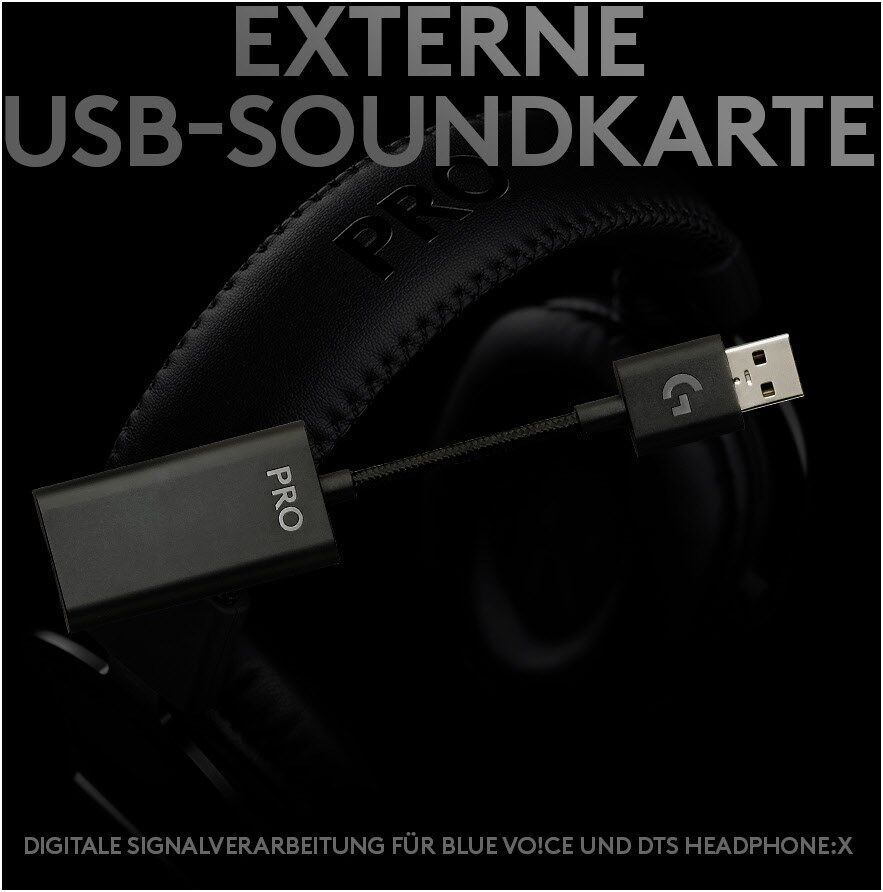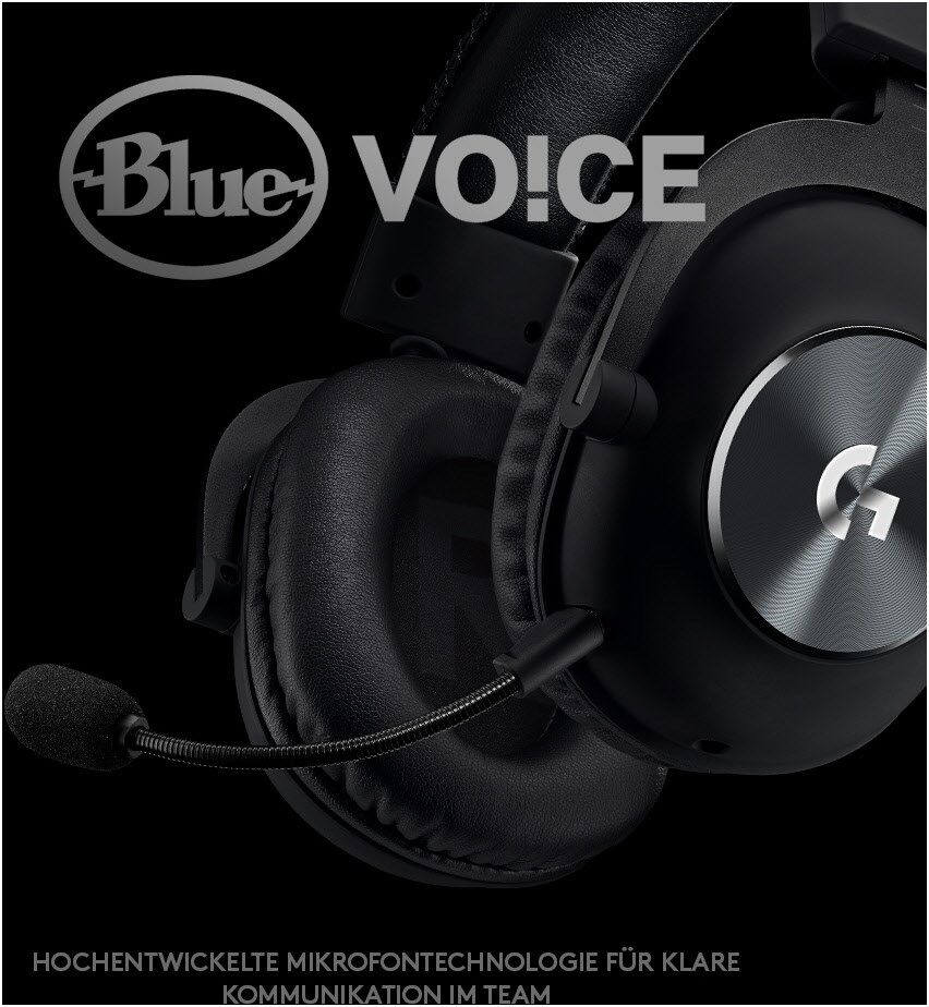 * Erweiterte Funktionen wie Blue VO!CE und DTS Headphone:X 2.0 Surround Sound funktionieren nur auf dem PC über die Logitech G HUB Gaming Software Blue VO!CE enthält DTS-Audioverbesserungen.