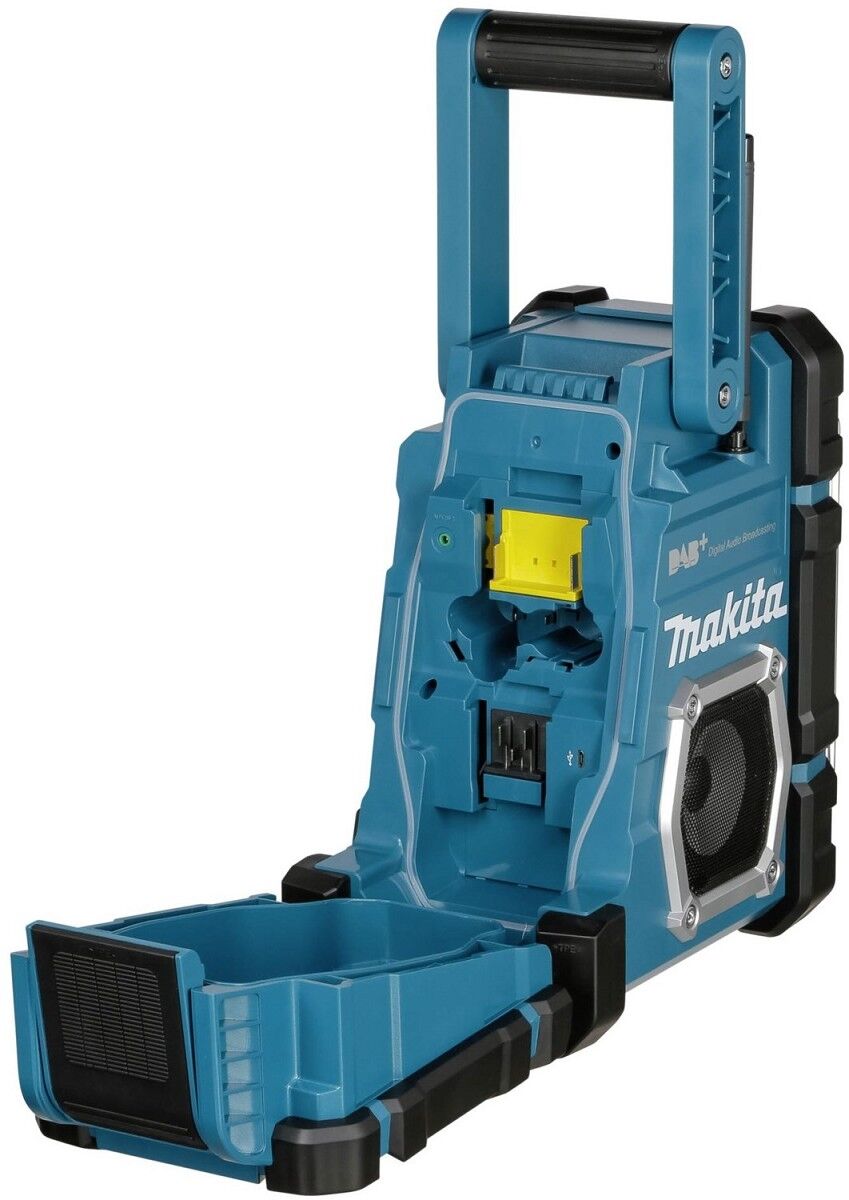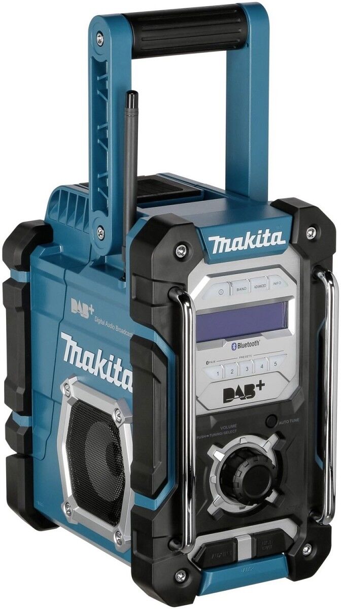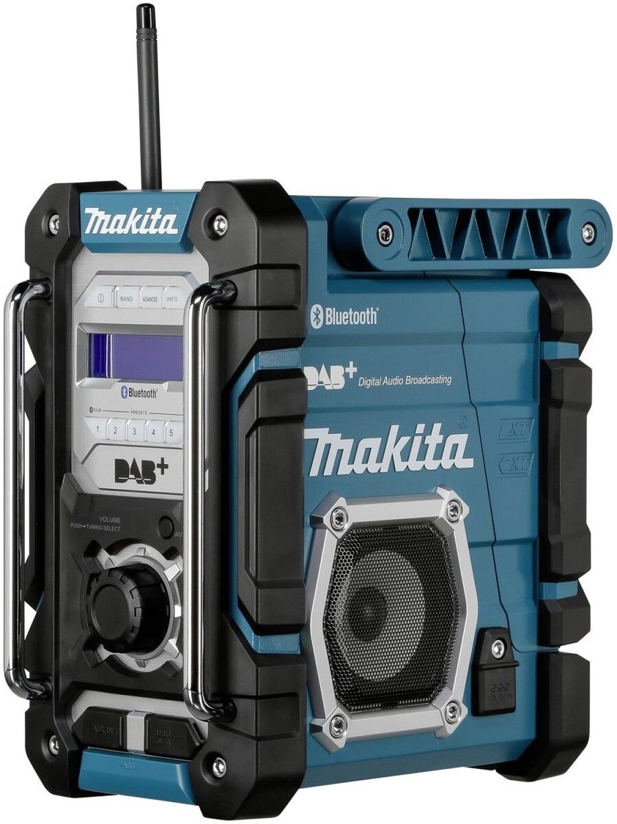 Makita DMR112. Audio Kanäle: 2.0 Kanäle, Treiberdurchmesser: 8,9 cm. RMS-Leistung: 4,9 W. Übertragungstechnik: Kabellos. Produkttyp: Tragbarer Stereo-Lautsprecher, Produktfarbe: Schwarz, Türkis, Lautstärkeregler: Tasten. Empfohlene Nutzung: Universal, Digitales UKW-Radio: 87.5 - 108 MHz