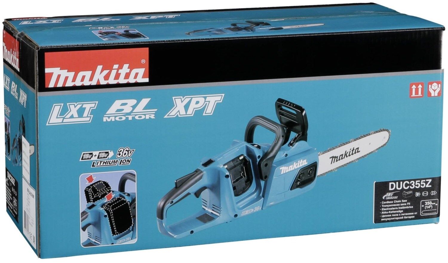 Lieferumfang:1x Makita DUC355 Akku-Kettensäge, 1x Schwert 35cm, 1x Transportschutz, 1x Sägekette, 1x Kombischlüssel, Lieferung ohne Akku und Ladegerät (optional erhältlich)