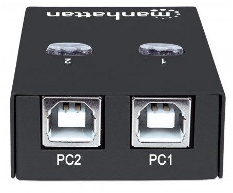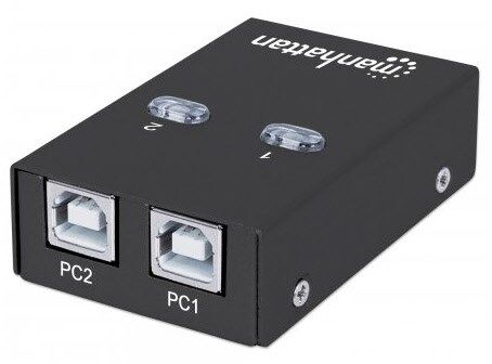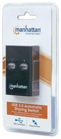 Der Manhattan 2-Port USB 2.0-Umschalter ermöglicht das komfortable Teilen eines USB-Peripheriegeräts zwischen zwei PCs oder Notebooks - besonders praktisch für die gemeinsame Nutzung eines Druckers, Scanners, einer externen Festplatte und mehr. Das Umschalten erfolgt ganz einfach entweder per Bildschirmmenü oder direkt mit den Tasten am Umschalter selbst. Per Plug&Play ist die Installation im Handumdrehen ausgeführt. Die notwendigen USB-Kabel sind im Lieferumfang enthalten, Treiber oder ein externes Netzteil werden nicht benötigt.