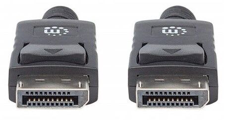 Manhattan DisplayPort-Kabel bieten eine Ein-Kabellösung für die Übertragung von hochauflösenden digitalen Video- und Audiosignalen von PCs und Notebooks auf ein DisplayPort-fähiges Display. Mit einer Bandbreite von 10,8 Gbit/s, Deep Color und 24-bit, 8-Kanal unkomprimierter Audiofähigkeit ist der kompakte 20-pol. Stecker ideal für die Verwendung mit DisplayPort-fähigen PCs und vielen Unterhaltungselektronikgeräten. Durch vollständige Folien- und Geflechtsschirmung, vergossene Stecker mit Zugentlastung sowie vergoldete Kontakte sorgen Manhattan DisplayPort-Kabel für maximale Anschlussqualität ohne Interferenzen.