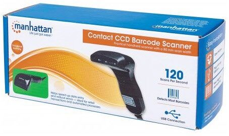 | Manhattan CCD Kontakt-Barcodescanner, 80 mm Scanbreite, USB, Tragbares Barcodelesegerät, 1D, CCD, Codabar,Code 11,Code 128,Code 39,Code 93,Industrial 2 of 5,Interleaved 2 of..., 120 Auslesungen/Sekunde, 0 - 3000 Lux | ||||