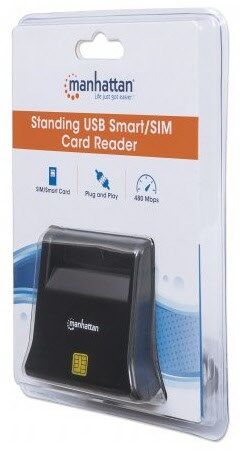 Manhattan USB 2.0 Smartcard-/SIM-Kartenlesegerät mit Standfuß, USB-A-Stecker, Kontaktlesegerät, Desktop, extern, schwarz. Unterstützung von Positionierung: Indoor, Produktfarbe: Schwarz, LED-Anzeigen: Aktivität, Leistung. Schnittstelle: USB 2.0. Stromaufnahme (max): 0,06 A, Arbeitsspannung: 5 V. Unterstützt Windows-Betriebssysteme: Windows 10,Windows 7,Windows 8.1,Windows Vista,Windows XP, Unterstützt Mac-Betriebssysteme: Mac OS 9.0, Mac OS 9.1, Mac OS 9.2, Mac OS X 10.0 Cheetah, Mac OS X 10.1 Puma, Mac OS X 10.10.... Zertifizierung: FCC CE RoHS2 CCID Rev.1.1 EMV4.0 CAC