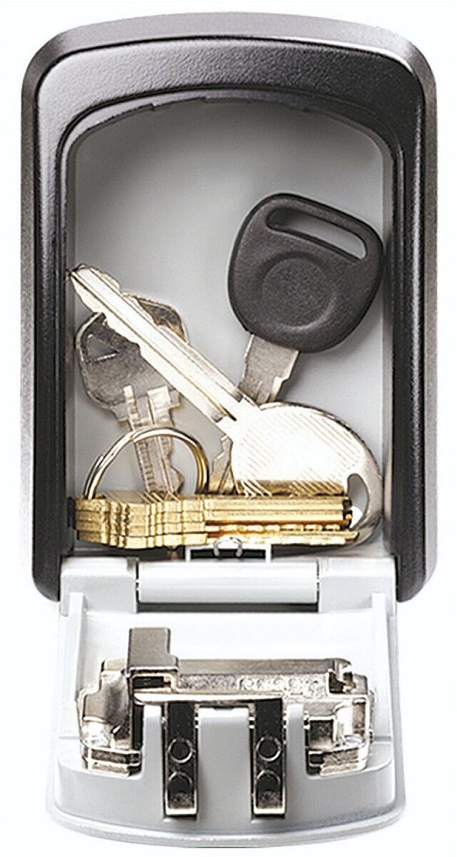 Der Select Access Schlüsselkasten Nr. 5401EURD von Master Lock verfügt über ein 83 mm breites, robustes Metallgehäuse und eignet sich zur Aufbewahrung von mehreren Gebäudeschlüsseln. Verstecken Sie Ihre Schlüssel nicht mehr unter der Fußmatte oder unter dem Blumentopf: Select Access ist die ideale Lösung, um anderen den Zugang zu Ihren Schlüsseln zu ermöglichen. Zur dauerhaften Wandbefestigung. Schlüsselloser Komfort und mehr Sicherheit durch individuell einstellbare, 4-stellige Kombination. Eine Türklappe schützt die Kombination vor Witterung und Schmutz.