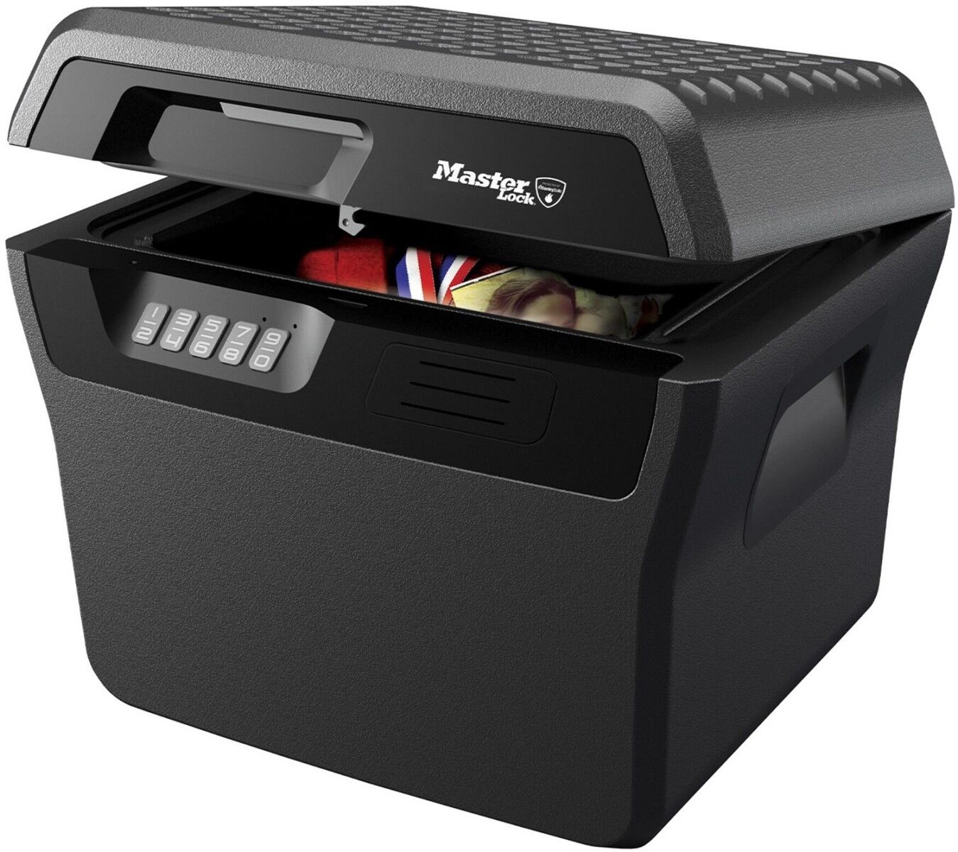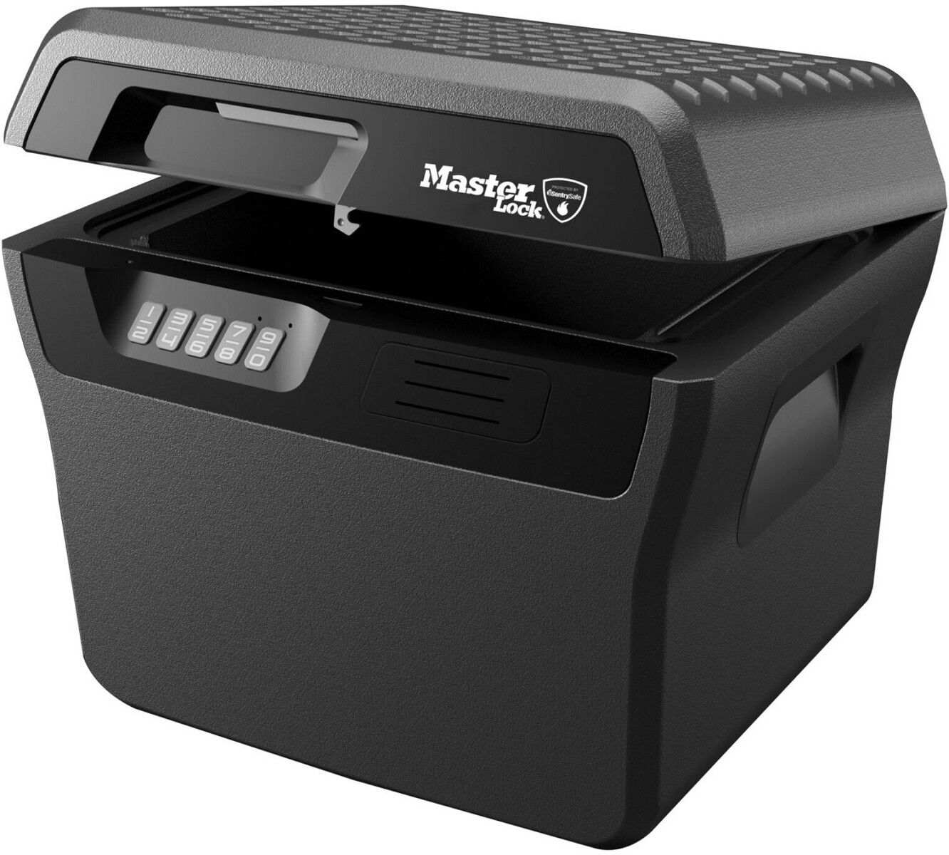 MASTER LOCK Groe Sicherheitskassette. Typ: Frei stehend sicher, Produktfarbe: Holzkohle, Grau, Verschlusstyp: Elektronisch. Energiequelle: Akku. Breite: 421 mm, Tiefe: 351 mm, Höhe: 359 mm. Verpackungsart: Box