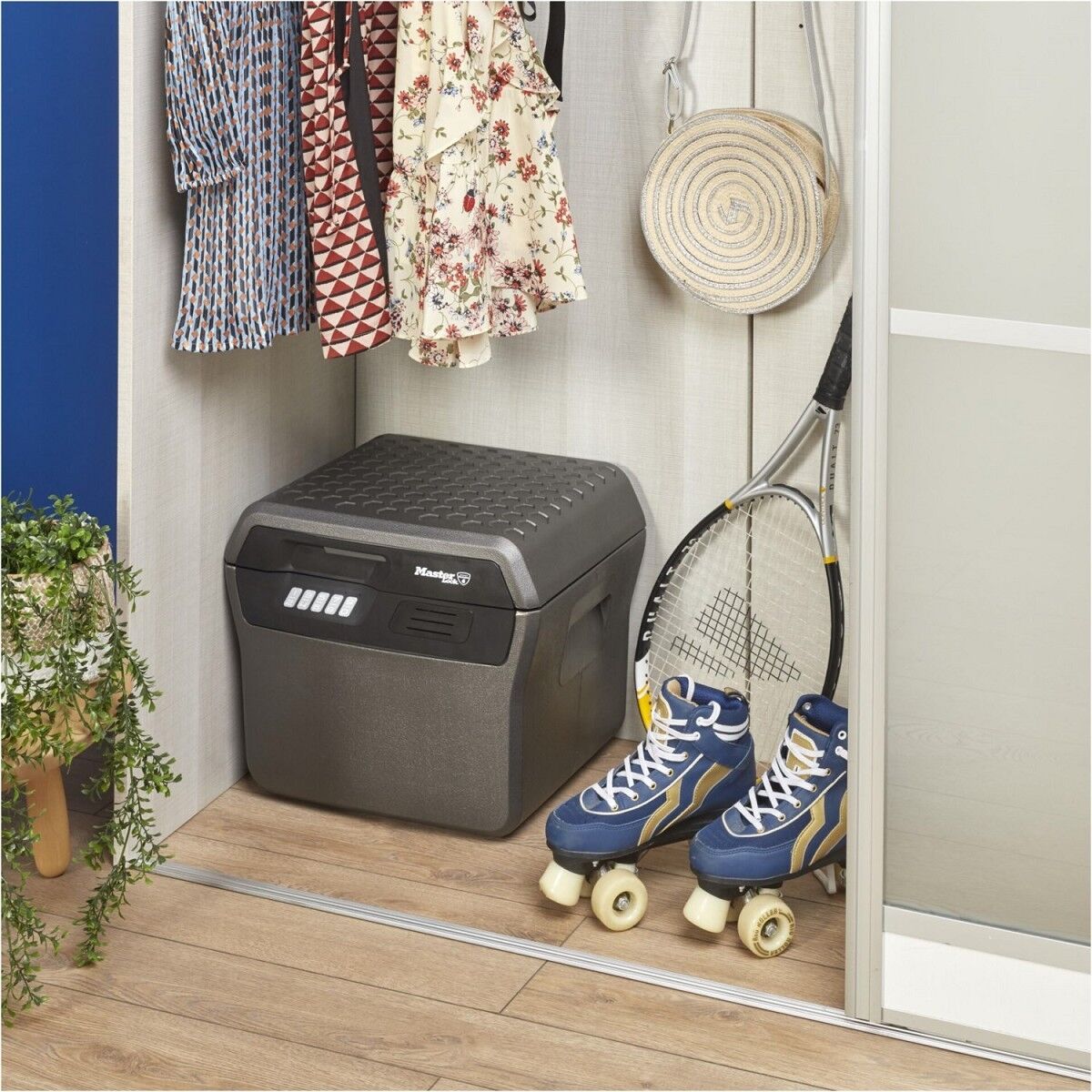 Das digitale Schloss schützt Dokumente und Wertsachen vor neugierigen Blicken und verhindert, dass sich der Deckel im Brandfall öffnet