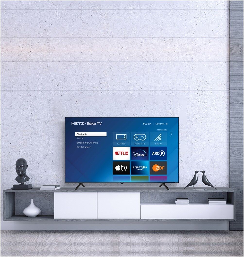 Mit dem METZ blue MUD6001 genießen Sie schnellen und komfortablen Zugang zu Deutschlands beliebtesten Streaming-Diensten und -Channels und phantastische Bilder in Ultra HD-Auflösung mit HDR-Unterstützung. Als erstes Smart-TV auf dem deutschen Markt basiert der MUD6001 auf der neuen TV-Plattform Roku OS und verbindet so Linear-TV und Streaming zu einem runden Gesamterlebnis mit blitzschnellen Umschaltzeiten. Über seinen integrierten Tripletuner empfängt er klassisches Fernsehen über Satellit, Kabel oder Antenne und unterstützt Timeshift-Funktionen via USB. Über die plattformübergreifende Suchfunktion Roku Search finden Sie mühelos genau die Inhalte, die Sie sehen wollen – gleich ob im täglichen Live-Programm oder in Ihren Streaming Abos. So macht Streaming Spaß.