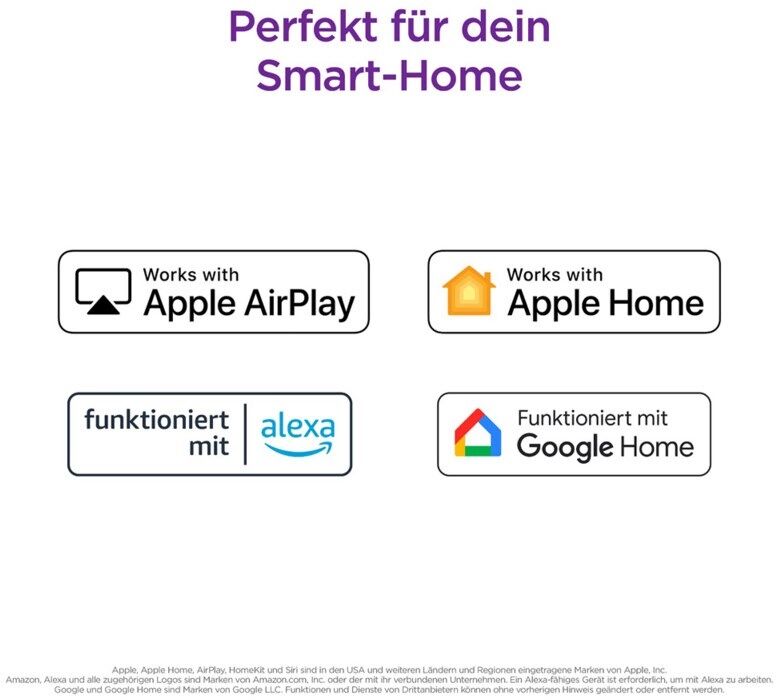Unterstützt alle gängigen Sprachassistenten: Apple AirPlay, Apple Home, Alexa, Google Home