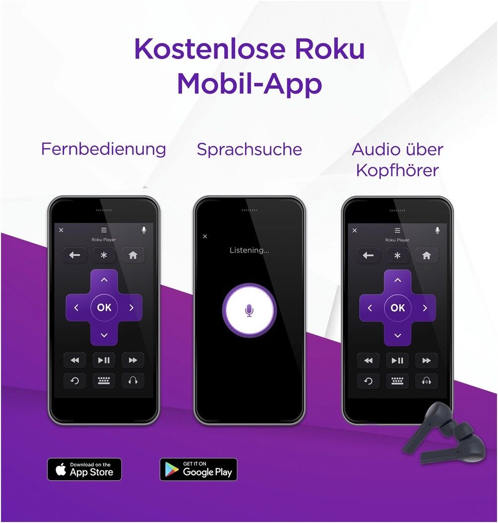 Kostenlose Roku App: Steuere deinen TV, nutze die Sprachsuche, Audio über Kopfhörer und mehr. iOS® und Android™