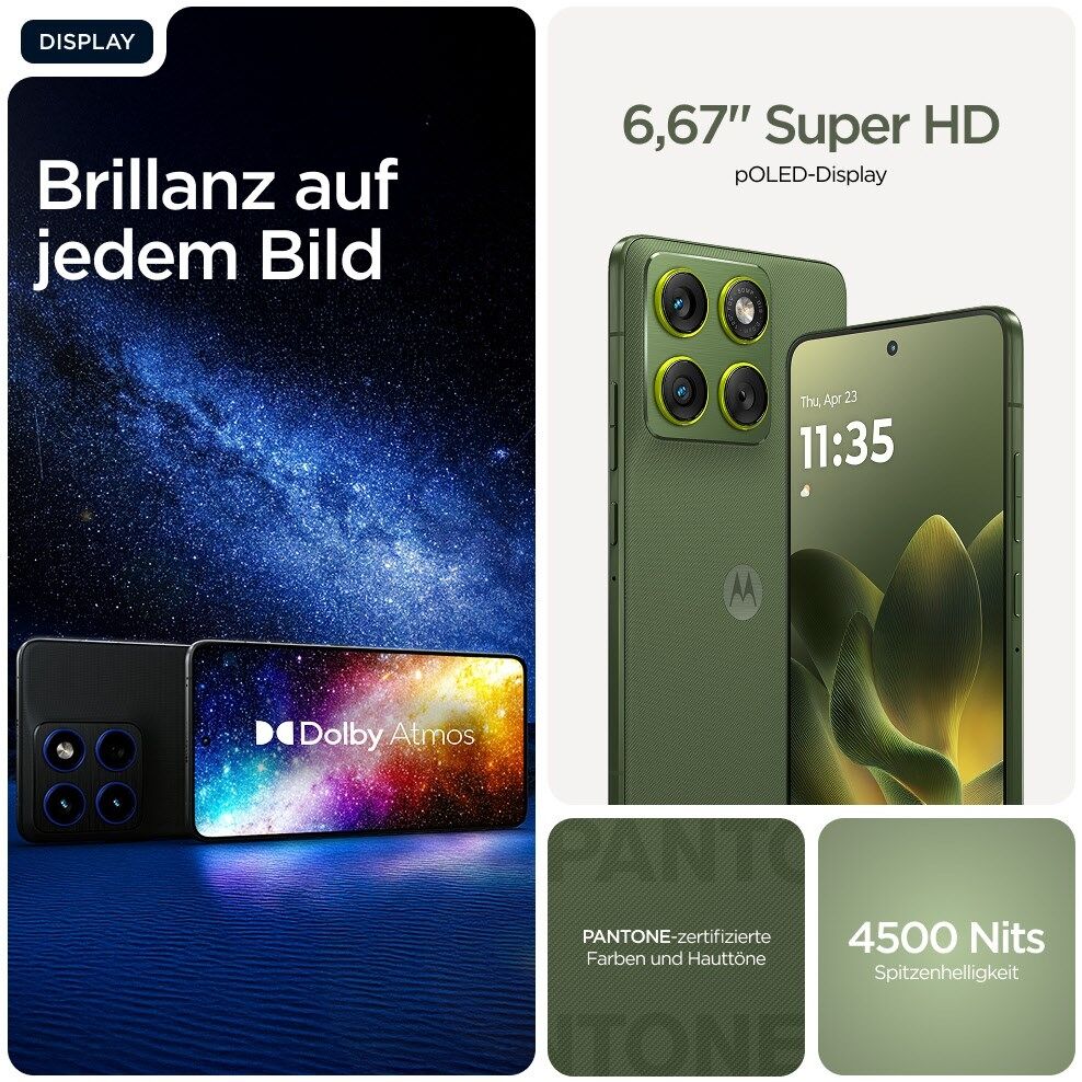Wir präsentieren das unglaublich dünne motorola edge 70. Es besteht aus Flugzeugaluminium mit unverwechselbarem Finish in einer Pantone®-Farbe und definiert neu, was ein ultradünnes Smartphone alles kann. Dank der drei 50-MP-Objektive, der Leistung von moto ai und Pantone™ Validated-Farbe und -Hauttöne wird jede Aufnahme zu einem Erfolg.³ Zusätzlich sorgt ein neuer Silizium-Kohlenstoff-Akku dafür, dass dir auf deinen Abenteuertouren nicht der Strom ausgeht - ohne Kompromisse beim schlanken Design. Es sieht nicht nur schick aus. Es hält auch besonders lange. Auf den Unterwasserschutz und die Widerstandsfähigkeit gemäß Militär-Standard kannst du dich verlassen.⁴ ⁵ Auf dem 6,67-Zoll-Super-HD-Display (1.220p) siehst du alles unglaublich detailliert. Darüber hinaus kommt es mit der Leistung der Snapdragon® 7 der 4. Generation und jeder Menge Speicherplatz. Damit übertrifft das motorola edge 70 alle Erwartungen.