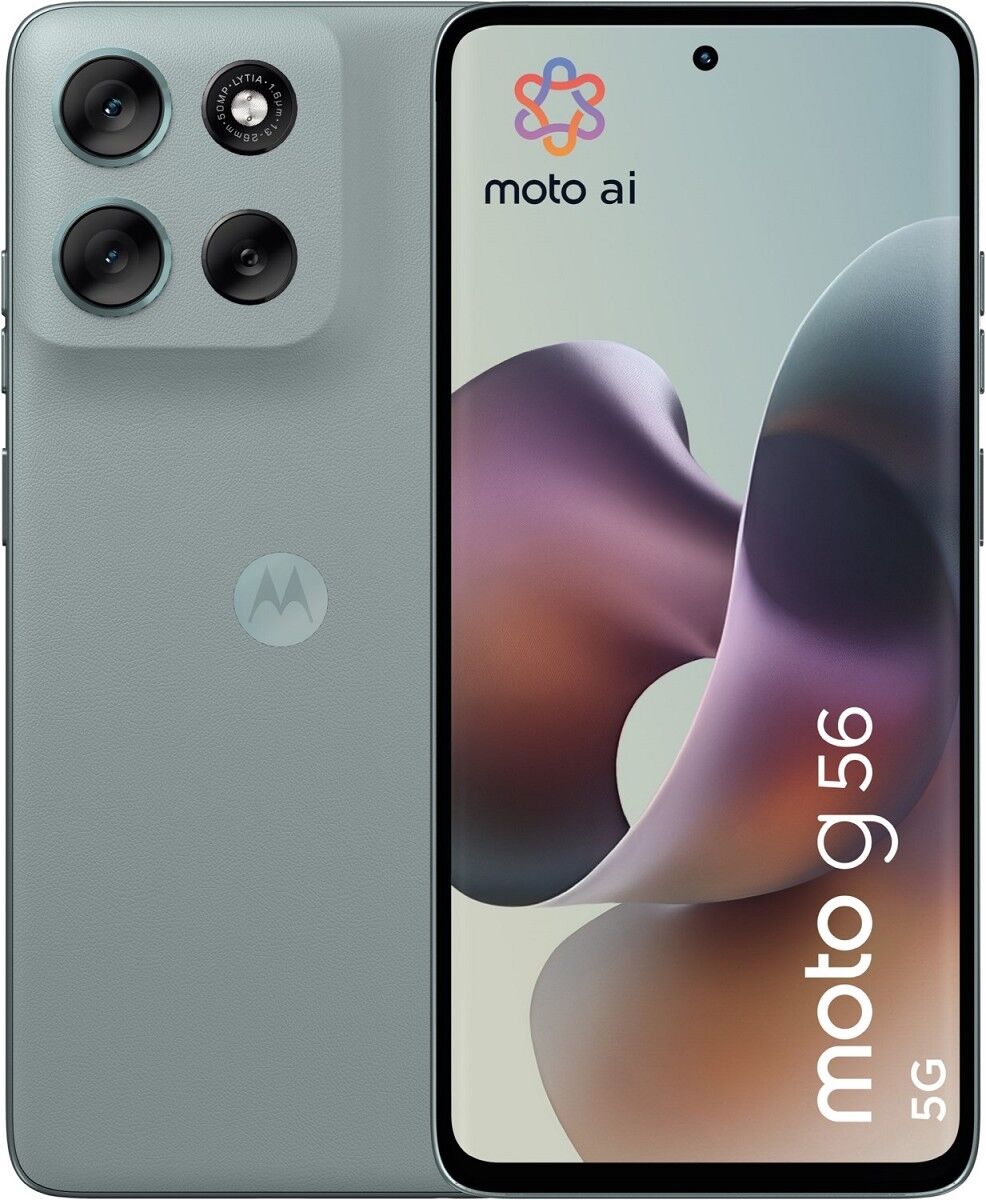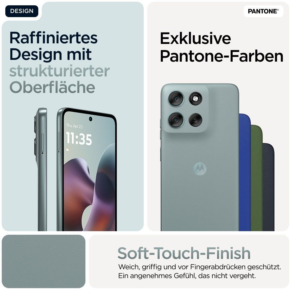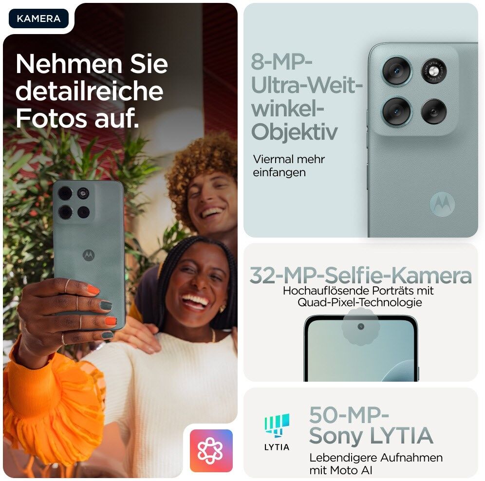 Schön und robust zugleich - das moto g56 begeistert mit einem edlen, angenehm griffigen Premium-Finish und ist gleichzeitig sehr gut für deinen Alltag gerüstet: wasserabweisend, extrem temperaturbeständig und mit kratzfestem Display ist es hart im Nehmen¹ ² ³. Erlebe dein Entertainment mit dem brillanten 6,72" FHD+-Display und leistungsstarken Stereolautsprechern mit Bass-Boost. Mit der 50 MP-Sony LYTIA™-Kamera gelingen dir dank Moto AI beeindruckende Fotos - bei Tag und Nacht. Und mit blitzschnellem TurboPower™-Aufladen⁴ hast du in wenigen Minuten wieder Energie für Stunden⁵. Genieße die Performance des starken Octa-Core-Prozessors mit 5G-Speed⁶ und jede Menge Speicherplatz für Fotos, Filme, Songs und Apps. Das moto g56. Langlebigkeit kann so schön sein.