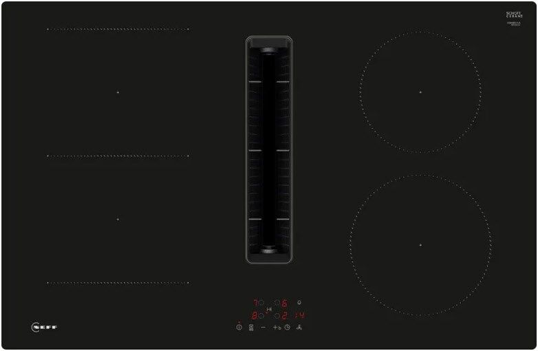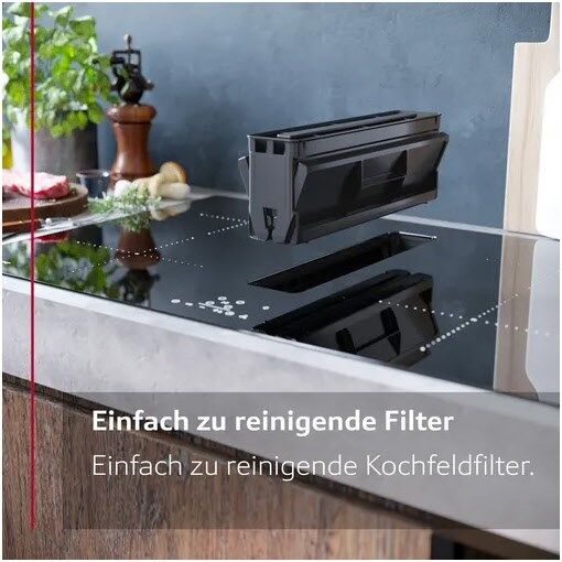 Dieses Induktionskochfeld mit integriertem Kochfeldabzug vereint 2 Geräte in einem und sorgt so für freie Sicht beim Kochen.