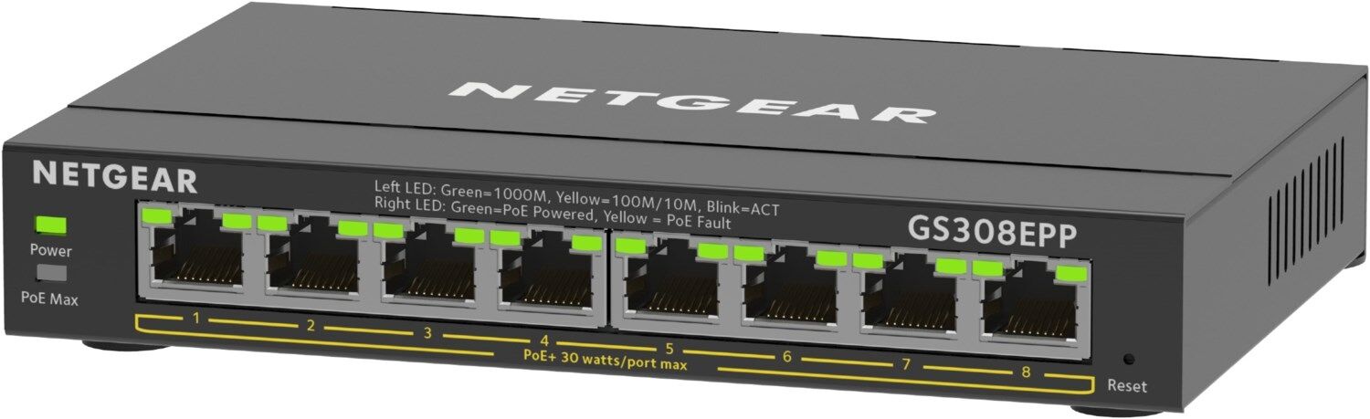 Einfach zu verwalten, grundlegende Netzwerkfunktionen zu einem erschwinglichen Preis für KMUs. GS308EPP bietet ein Gesamtbudget von 123W für die Stromversorgung von PoE-Geräten wie VoIP-Telefonen, IP-Kameras, WLAN-Zugangspunkten usw..