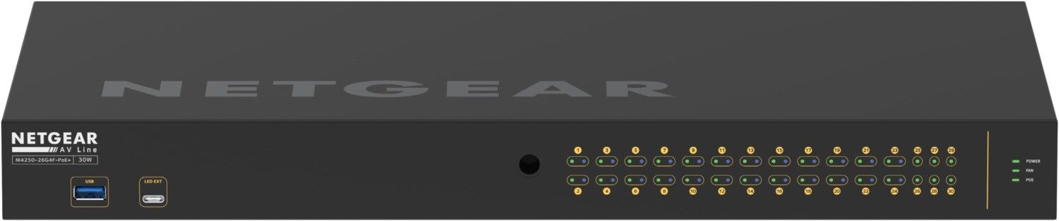 Switching für 1G AV over IP mit nach hinten gerichteten Ports für eine saubere Integration in AV-Racks. Vorkonfiguriert für sofort einsatzbare Funktionalität!