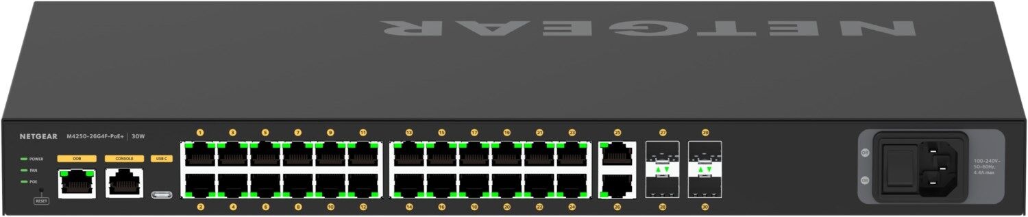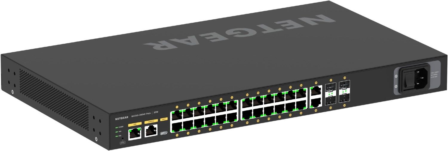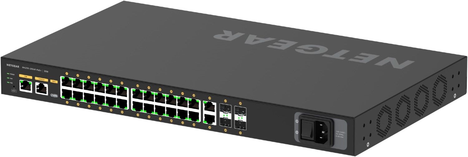 26 Gigabit Ethernet Ports 10/100/1000 RJ45 (24 PoE+ 802.3at Ports (300W Total Budget)), 4 SFP 1000BASE-X Fiber Ports