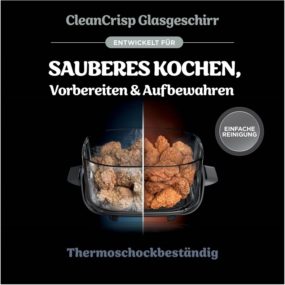 Zuverlässiges Kochen ohne PFAS*: mit CleanCrisp-Glasbehältern zum Kochen und Aufbewahren