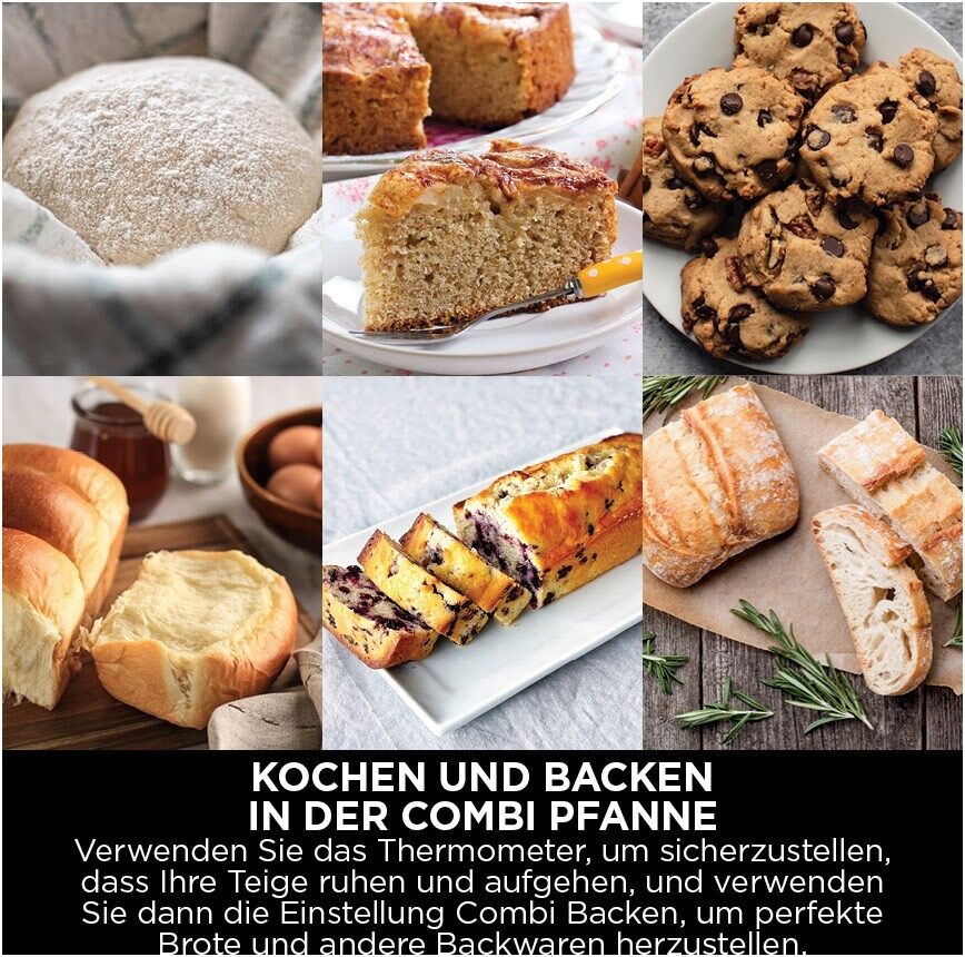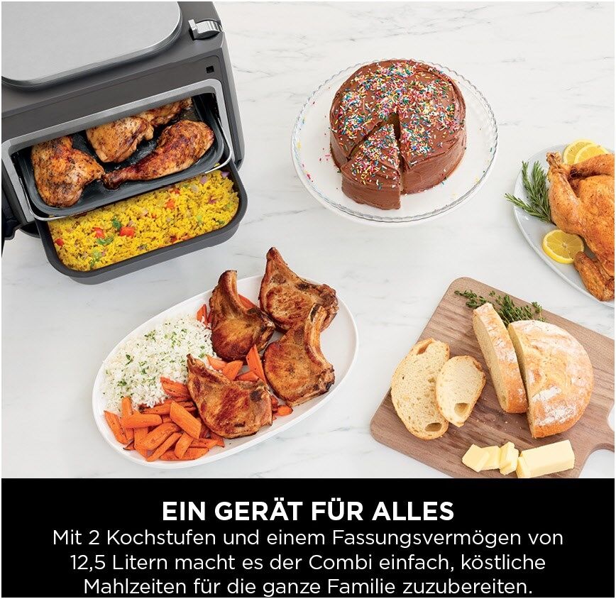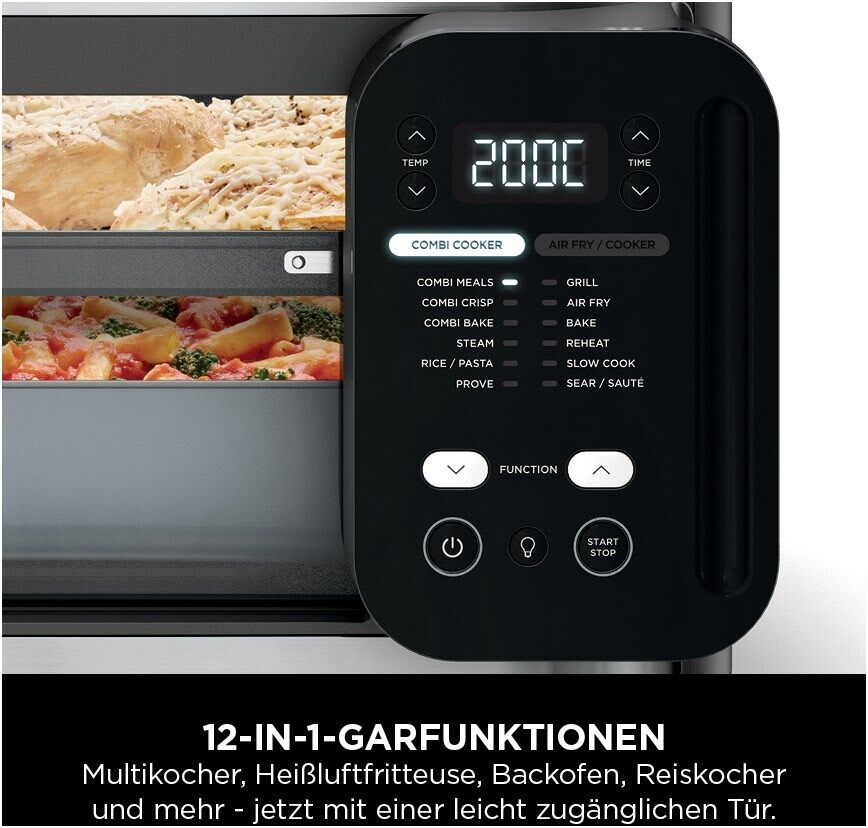 12 Funktionen: Combi Meals, Combi Crisp, Combi Backen, Reis/Pasta, Dampf, Grillen, Heißluft-Frittieren, Backen, Braten, Aufwärmen, Braten/Sautieren, Slow Cooking
