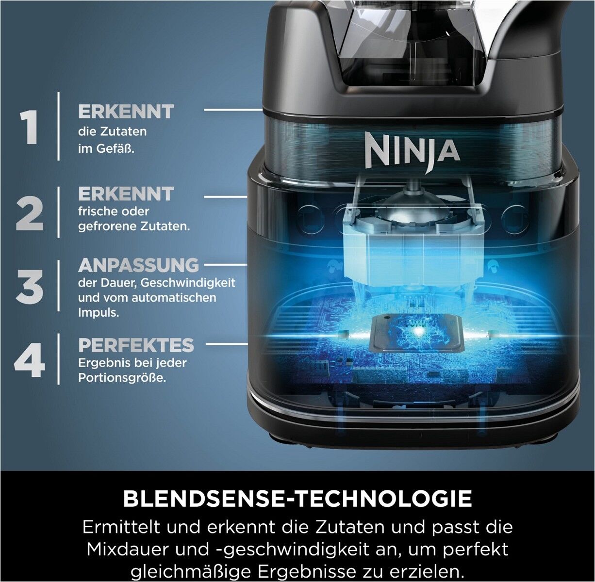 BlendSense Technologie: Erkennt automatisch die Zutaten und passt die Einstellungen für perfekte Ergebnisse an