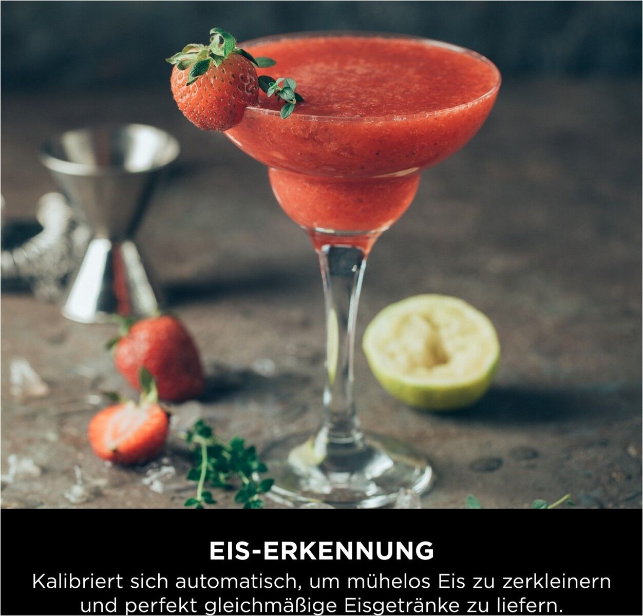 Eis-Erkennung: Passt die Leistung automatisch an, um beim Zubereiten von Eisgetränken das Eis zu zerkleinern.