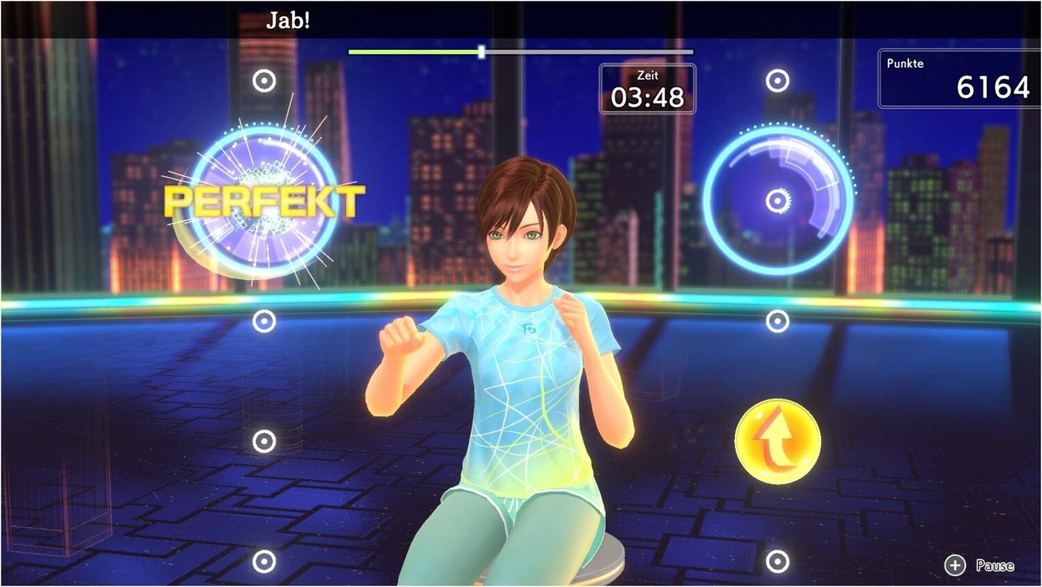 Wähle einen von sechs vollvertonten (auf Englisch) persönlichen Trainern und werde aktiv, indem du zu 30 neuen Instrumentalstücken das Schlagen und Ausweichen im Rhythmus übst!