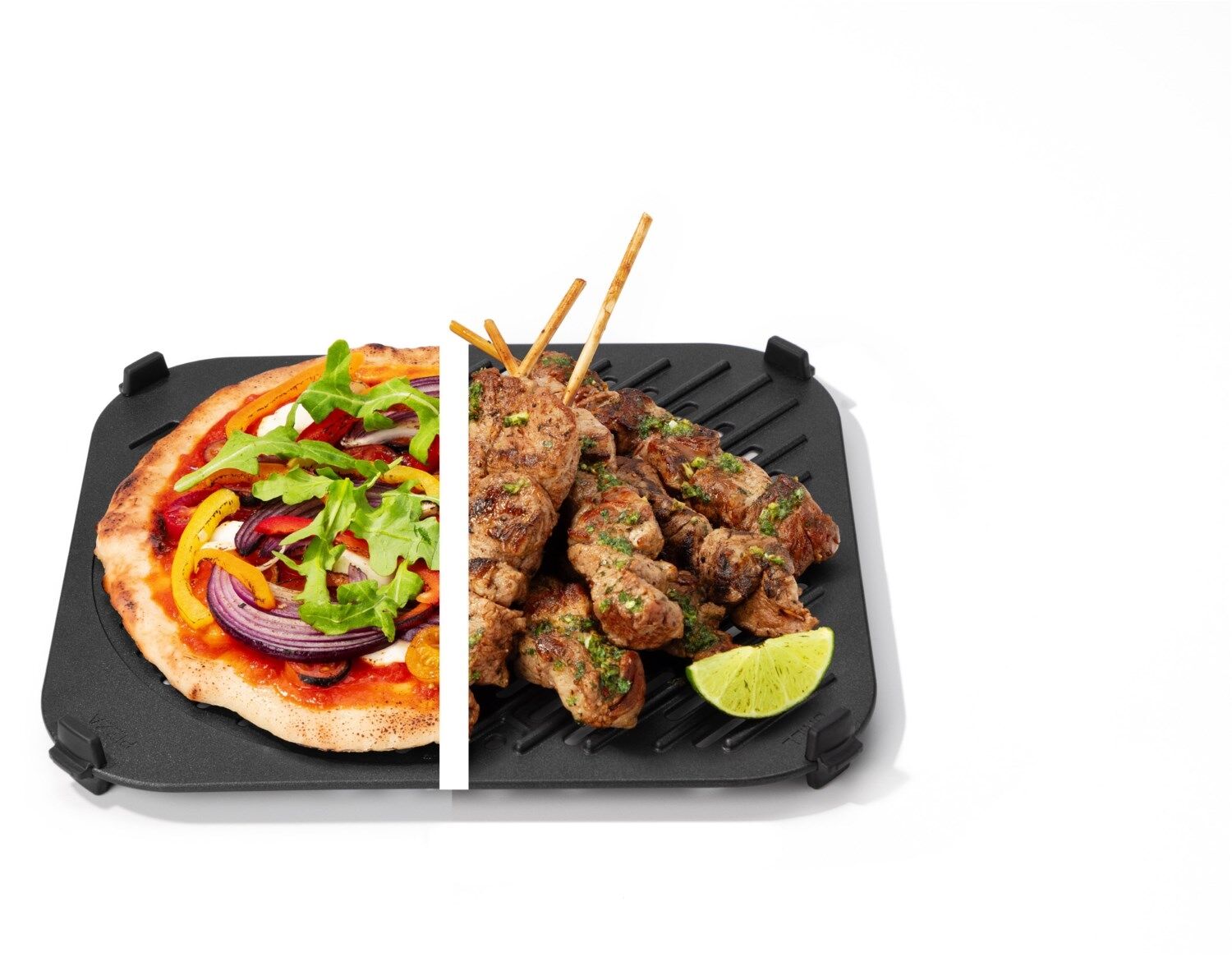 Eine wendbare Platte, die auf der einen Seite den typischen Grillgeschmack bringt und auf der anderen Seite Pizza-Kruste und andere Köstlichkeiten perfekt knusprig macht. Und dazu super einfach zu reinigen.