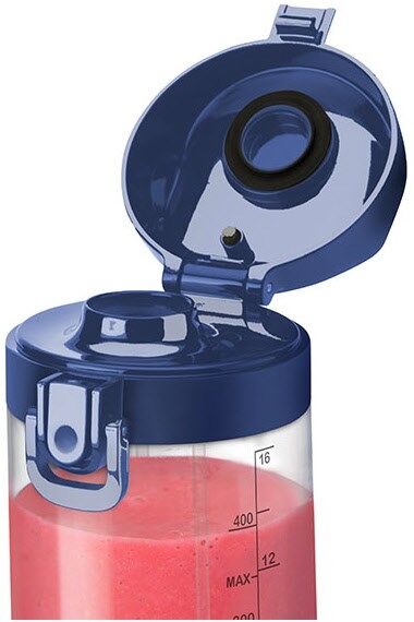 Dieser kompakte Smoothie Maker ist leicht und hat einen praktischen Deckel mit Tragegriff, um ihn überallhin mitnehmen zu können.