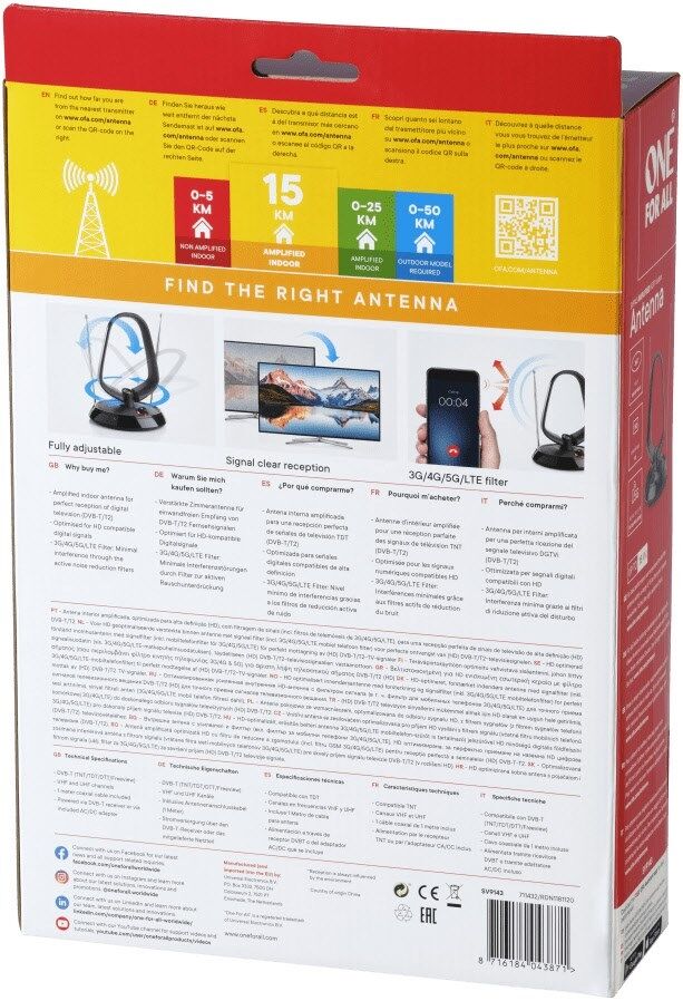 One For All DVB-T2 Zimmerantenne SV9143 (5G)