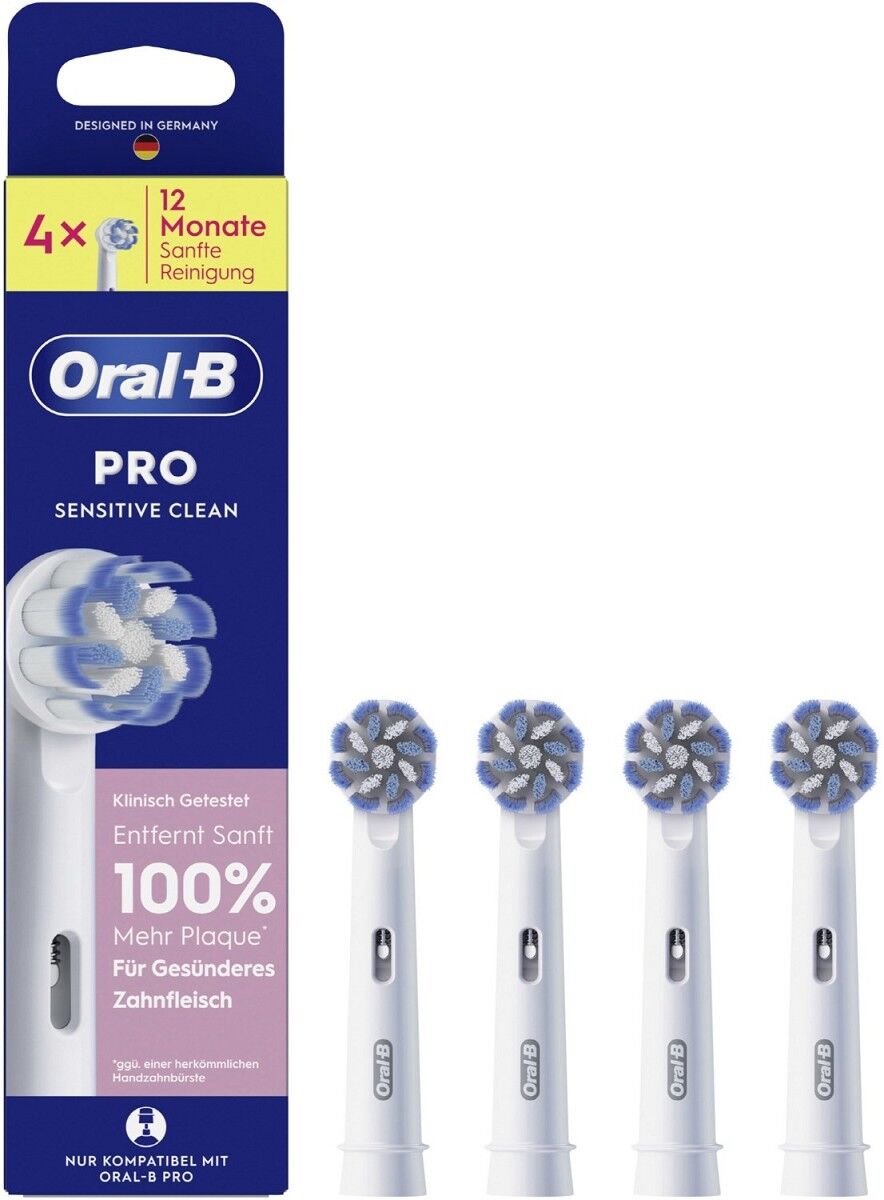 Klinisch bestätigt: Entfernt 10x besser Plaque* als Bürstenköpfe der meistverkauften Eigenmarke in Deutschland** (*12 Wochen durchschnittl. Plaqueentfernung, **Nielsen Handelspanel L12M). Der Sensitive Clean Bürstenkopf verfügt über ultra-weiche Borsten, die besonders sanft zum Zahnfleisch sind. Die Original-Bürstenköpfe von Oral-B wurden mit neuen X-förmigen Borsten entwickelt, die nun auch die Stellen reinigen, die normale Borsten nicht erreichen können. Zahnärzte empfehlen die Aufsteckbürste alle 3 Monate zu wechseln - für 100% Putzkraft. Garantierte Passform mit allen wiederaufladbaren Zahnbürsten von Oral-B, außer Pulsonic und iO.