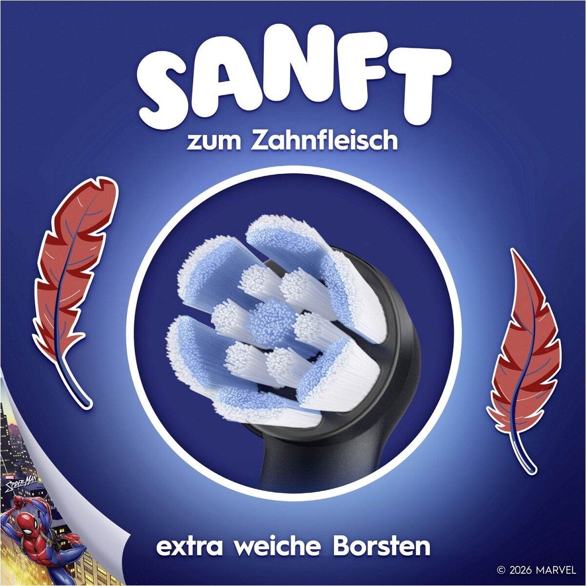 Die extra weichen Borsten und der kleine, runde Bürstenkopf sind speziell für Kinder entwickelt, um stark gegen Karies, aber sanft zu Zahnfleisch und wackeligen Zähnen zu sein.