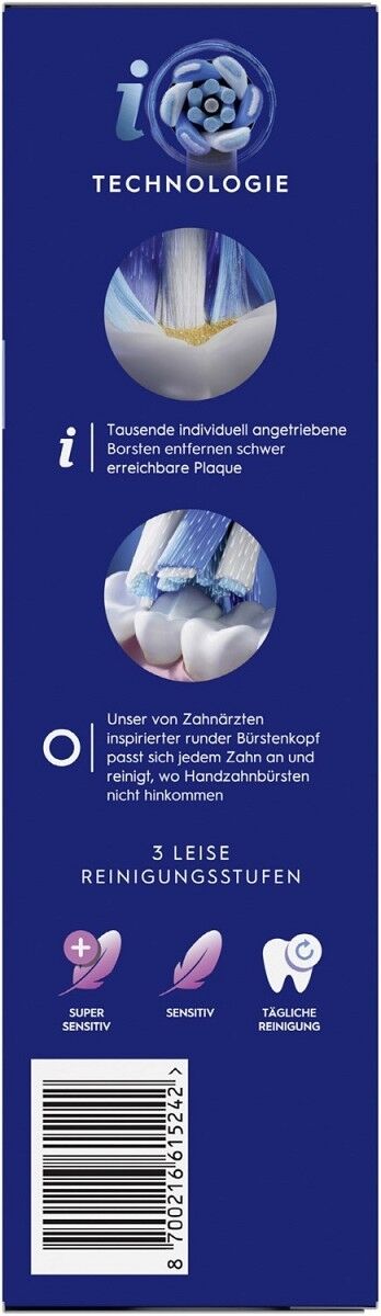 Bietet eine perfekte Zahnreinigung mit 3 leisen Reinigungsstufen: Super Sensitiv, Sensitiv & Tägliche Reinigung