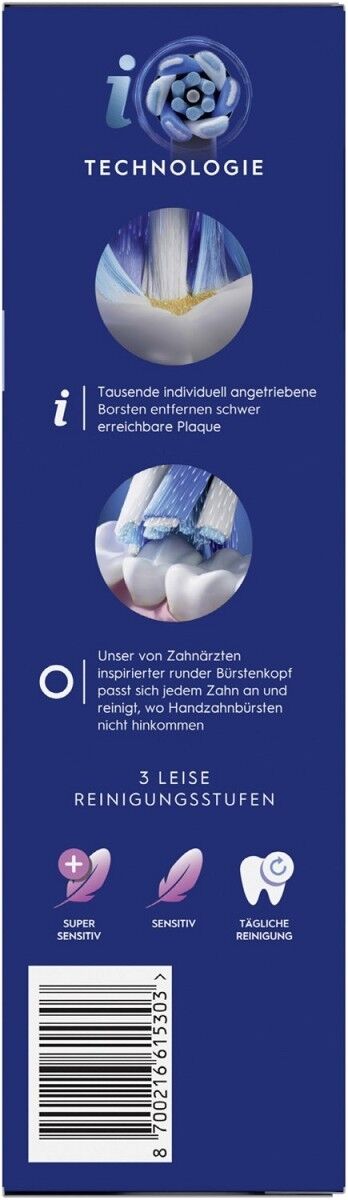 Bietet eine perfekte Zahnreinigung mit 3 leisen Reinigungsstufen: Super Sensitiv, Sensitiv & Tägliche Reinigung