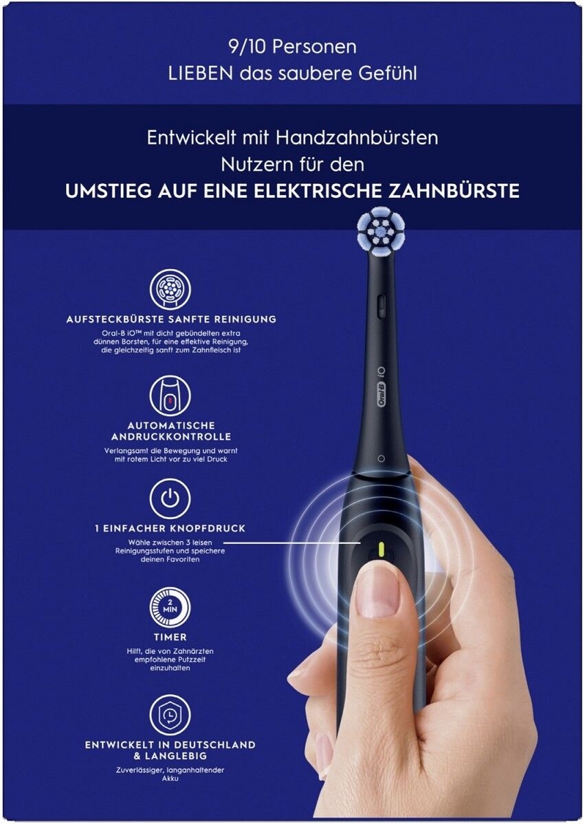 100% sauberere Zähne als mit einer herkömmlichen Handzahnbürste dank Oral-B's iO-Technologie: stark gegen Plaque, sanft zum Zahnfleisch