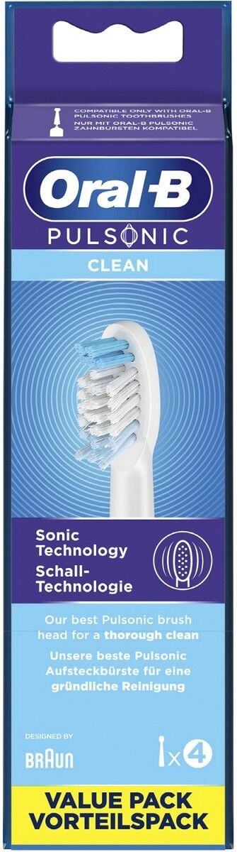 Lieferumfang: 4 Oral-B Pulsonic Clean Aufsteckbürsten (aus hygienischen Gründen einzeln verpackt)