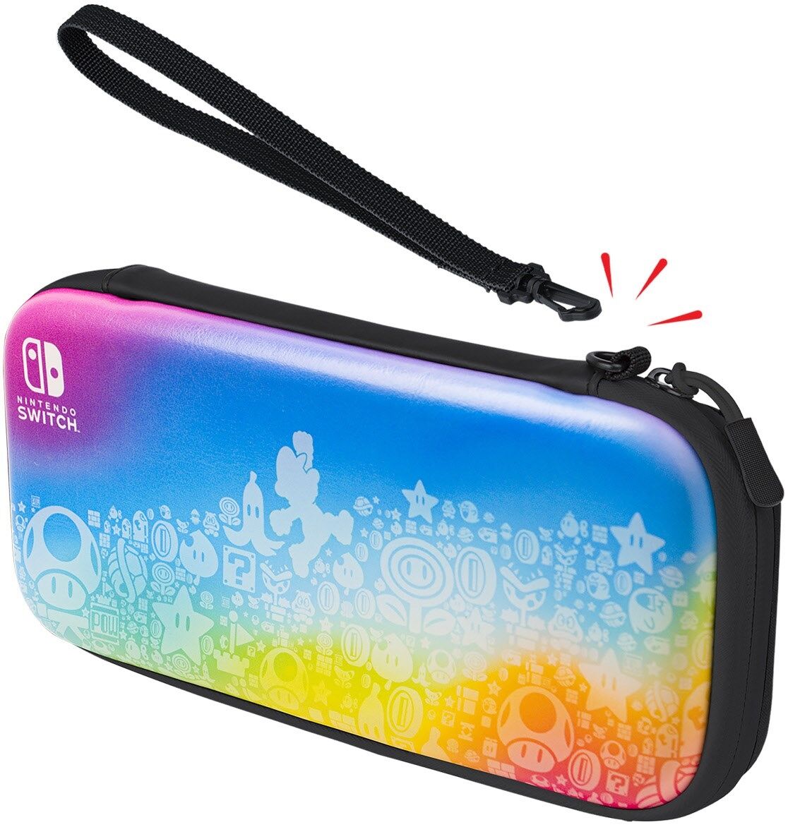 Bewahren und schützen Sie Ihre Nintendo Switch, Nintendo Switch Lite oder Nintendo Switch – OLED-Modell in der eleganten Star Spectrum Travel Case!Mit einem integrierten Ständer können Sie Ihr Gerät aufstellen, um stundenlang bequem unterwegs zu spielen.