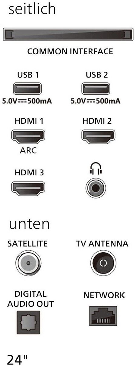 DVB-T2/-C/-S2 Triple Tuner, 3x HDMI, 2x USB, CI+, Digitaler Audio-Ausgang (optisch), LAN, WiFi 802.11n integriert