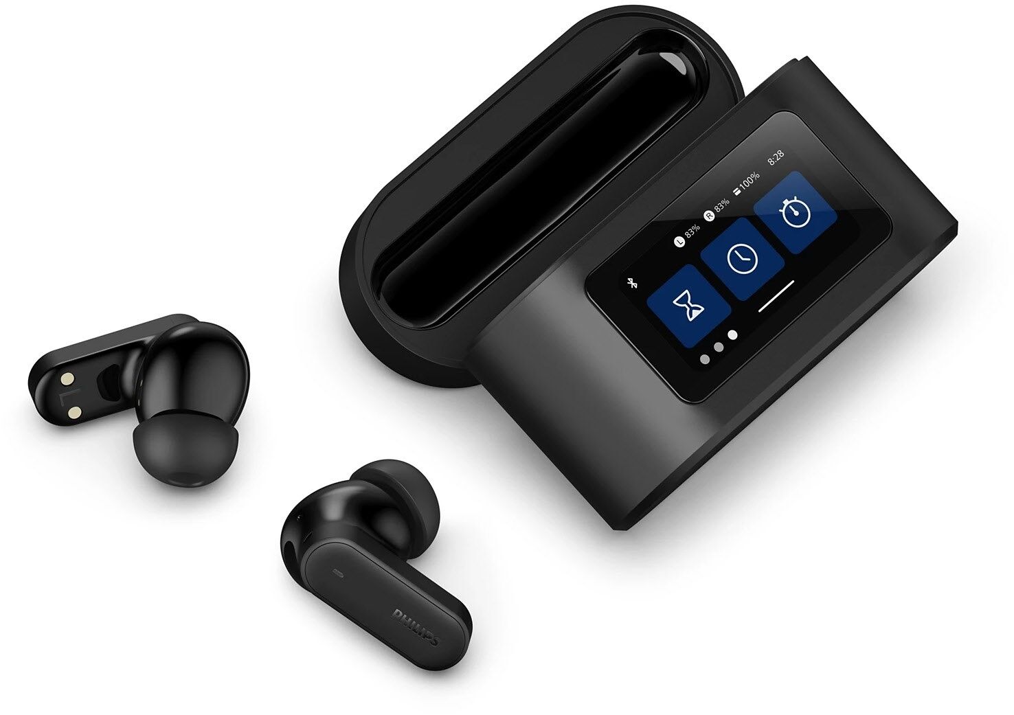 Die Schutzart IPX5 bedeutet, dass diese Earbuds auch Feuchtigkeit durch Schweiß standhalten können und auch ein leichter Regen sie nicht stört. Sie erhalten Silikon-Ohrstöpsel in drei Größen für einen perfekten Sitz, und Sie können anpassen, wie die Touch-Steuerung der Ohrstöpsel über die Philips Headphones Begleit- App eingerichtet wird.