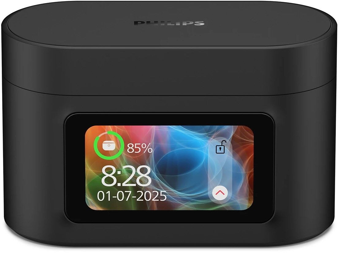 Mit diesem Etui können Sie Anrufe annehmen, die Wiedergabe und Noise Canceling steuern, Bässe und Höhen optimieren oder einen fehlenden Earbud finden. Der 1,47-Zoll- Touchscreen verfügt außerdem über eine Uhr und einen Timer sowie eine Taschenlampenfunktion mit hellem weißem Licht. Als echter Multitasker kann das Etui sogar Fotos aufnehmen, indem sie die Kamera per Fernsteuerung auf Ihrem verbundenen Gerät aktivieren können.