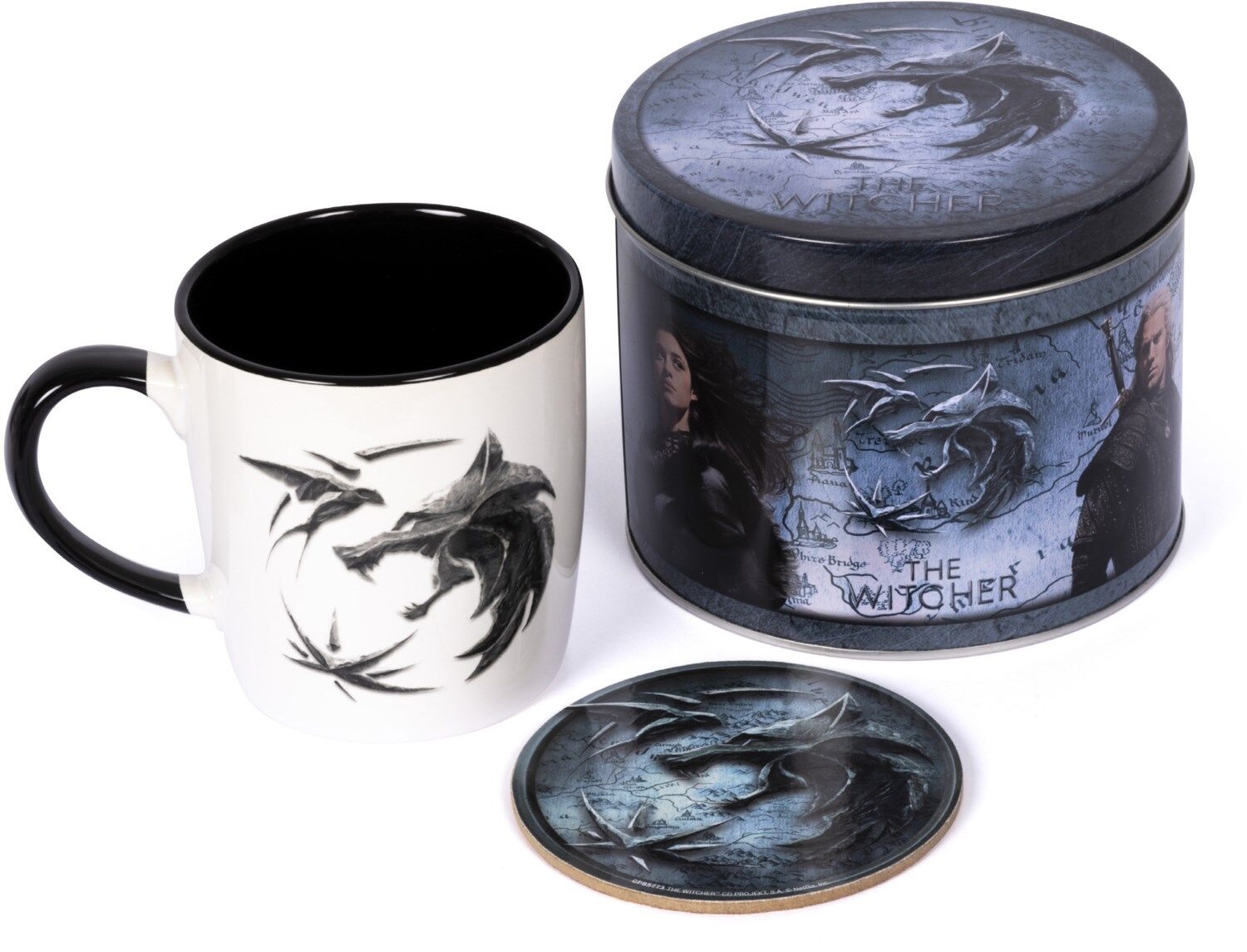 Das The Witcher "Taste of Steel" Set beinhaltet eine hochwertige Keramik Tasse mit einem Fassungsvermögen von ca. 370ml, einen passenden Kork-Untersetzer sowie eine vielseitig einsetzbare Metallbox, die hier ebenfalls als Verpackung dient